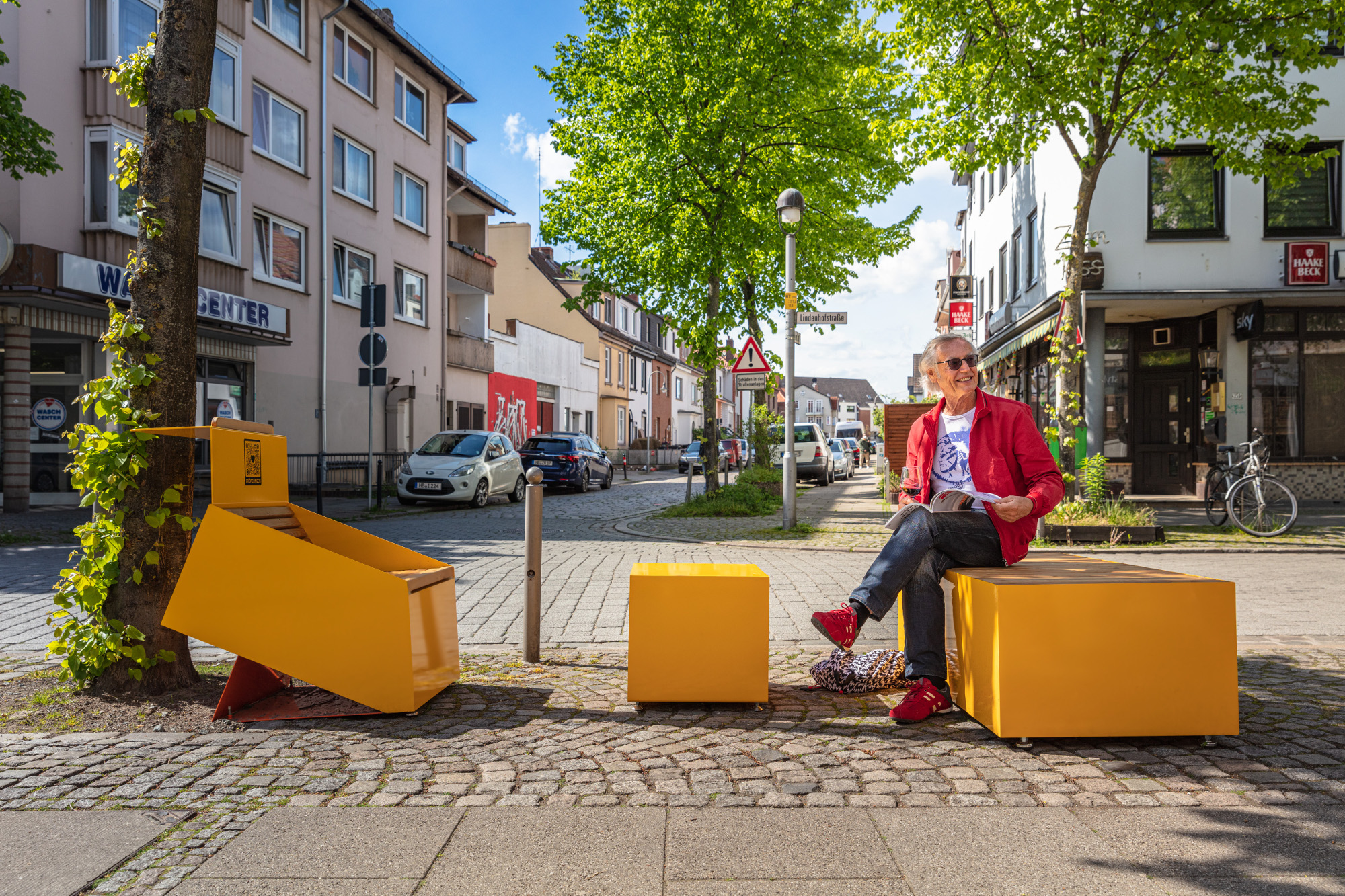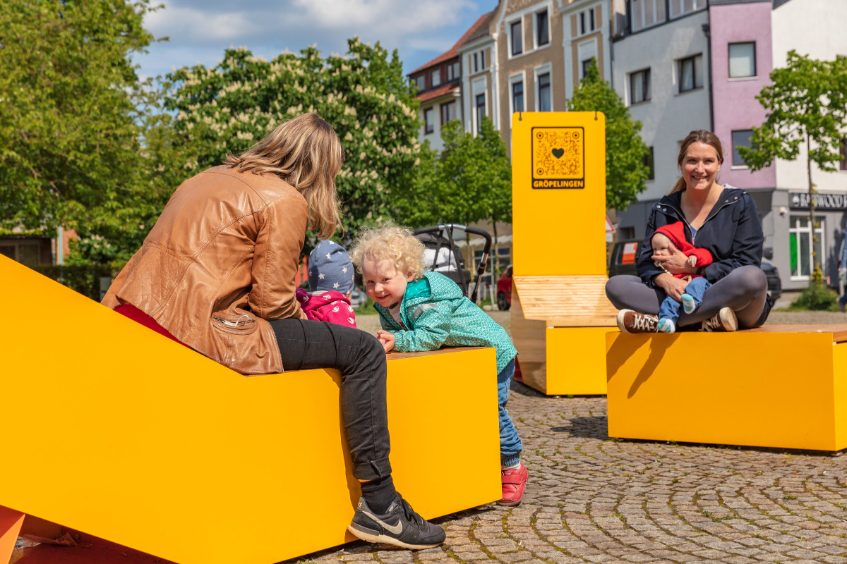 „Der Entwurf der Designagentur Hidden Fortress hat uns überzeugt, da die Möbel ein echter Blickfang sind, mit der Ausführung wirken sie zeitgemäß und robust und können, durch die vielen Kombinationsmöglichkeiten, vielfältig eingesetzt werden“, so Christiane Gartner, Kultur Vor Ort e.V. „In Kombination mit einem aktuellen branding mit QR-Codes können sich die Gäste tagesaktuell über viele attraktive Angebote in Gröpelingen informieren. So wird die Lindenhofstraße zum ersten öffentlichen analog-digitalen Erlebnisraum Bremens.“