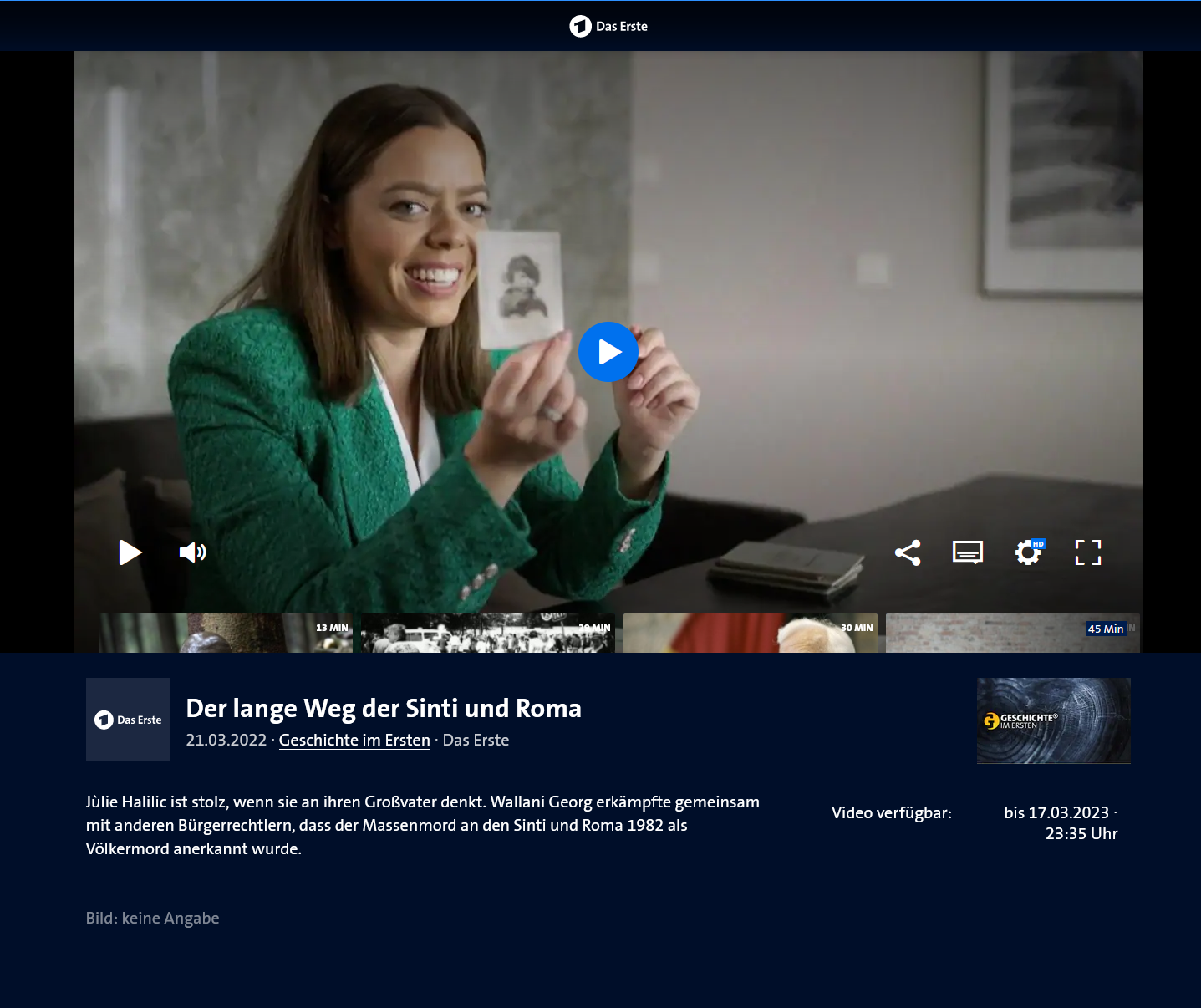 Link zum Film: https://www.daserste.de/information/reportage-dokumentation/geschichte-im-ersten/sendung/der-lange-weg-der-sinti-und-roma-100.html