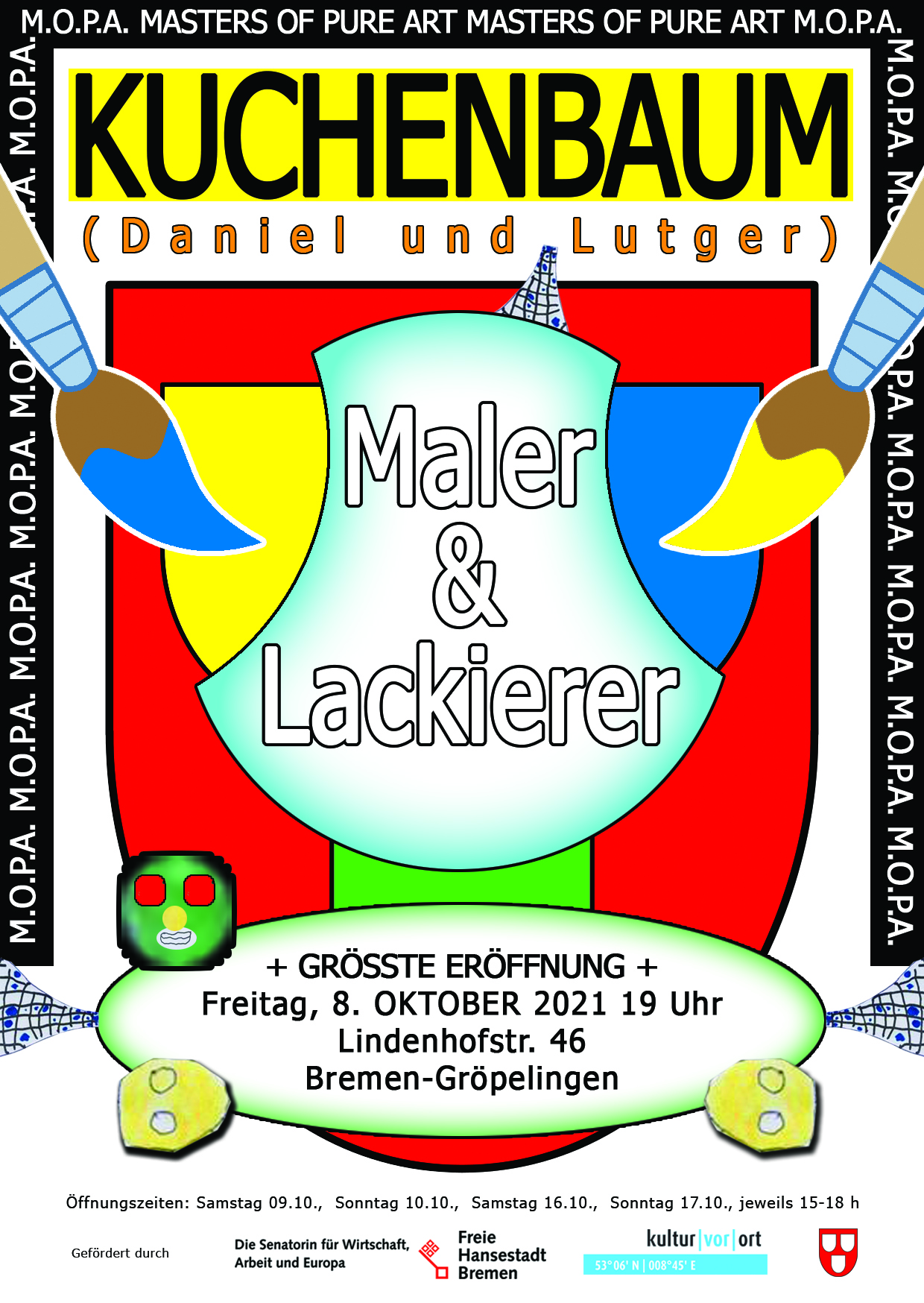 Am Freitag, den 08. Oktober 2021, eröffnet das MASTERS OF PURE ART die dritte Ausstellung in der Lindenhofstraße 46 in Bremen-Gröpelingen. Im Oktober ist die Künstlergruppe KUCHENBAUM zu Gast.