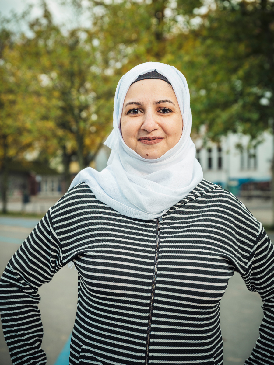 Eman Mershed ist 40 Jahre alt, Mutter von zwei Kindern, lebt und arbeitet im Bremer Westen. 2015 kam sie nach einer langen und schwierigen Reise nach Bremen. Sie musste ihre Heimat verlassen. Sie hat die deutsche Sprache in Bremen erlernt. Vor ihrer Flucht aus Syrien arbeitete sie als psychologische Beraterin an einer Oberschule und betreute Kinder und Jugendliche mit besonderen Bedarfen. In Syrien hat Eman Pädagogik und Psychologie an der Universität Damaskus studiert. In Deutschland hat sie eine pädagogische Weiterbildung absolviert und arbeitet heute neben ihrer ehrenamtlichen Arbeit für das ReBUZ Bremen-Nord als Sozialbetreuerin an der Oberschule Findorff.