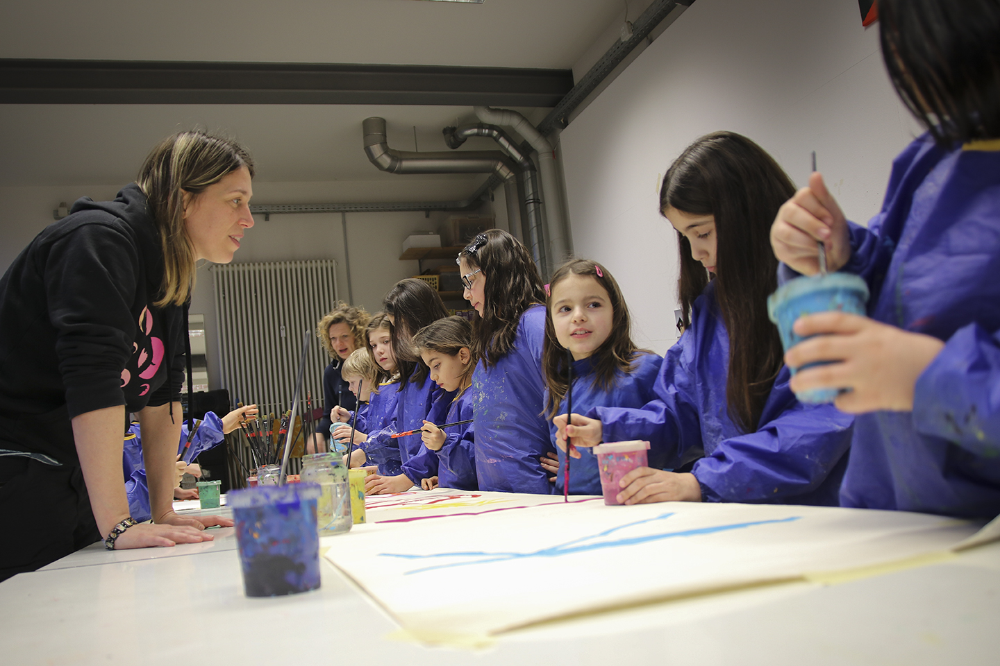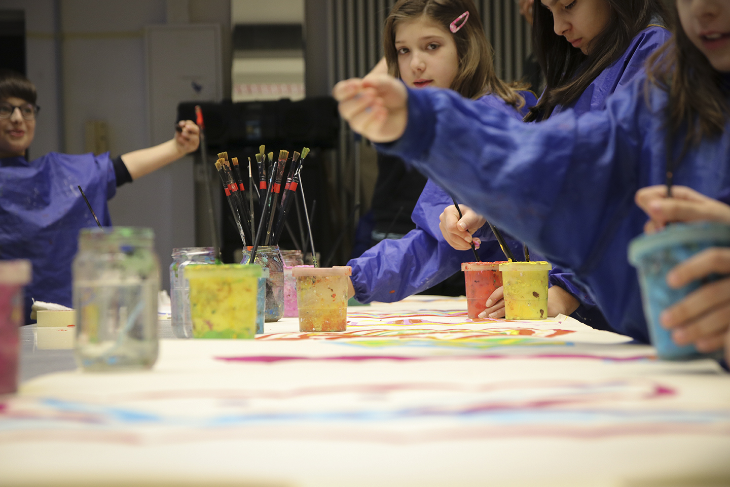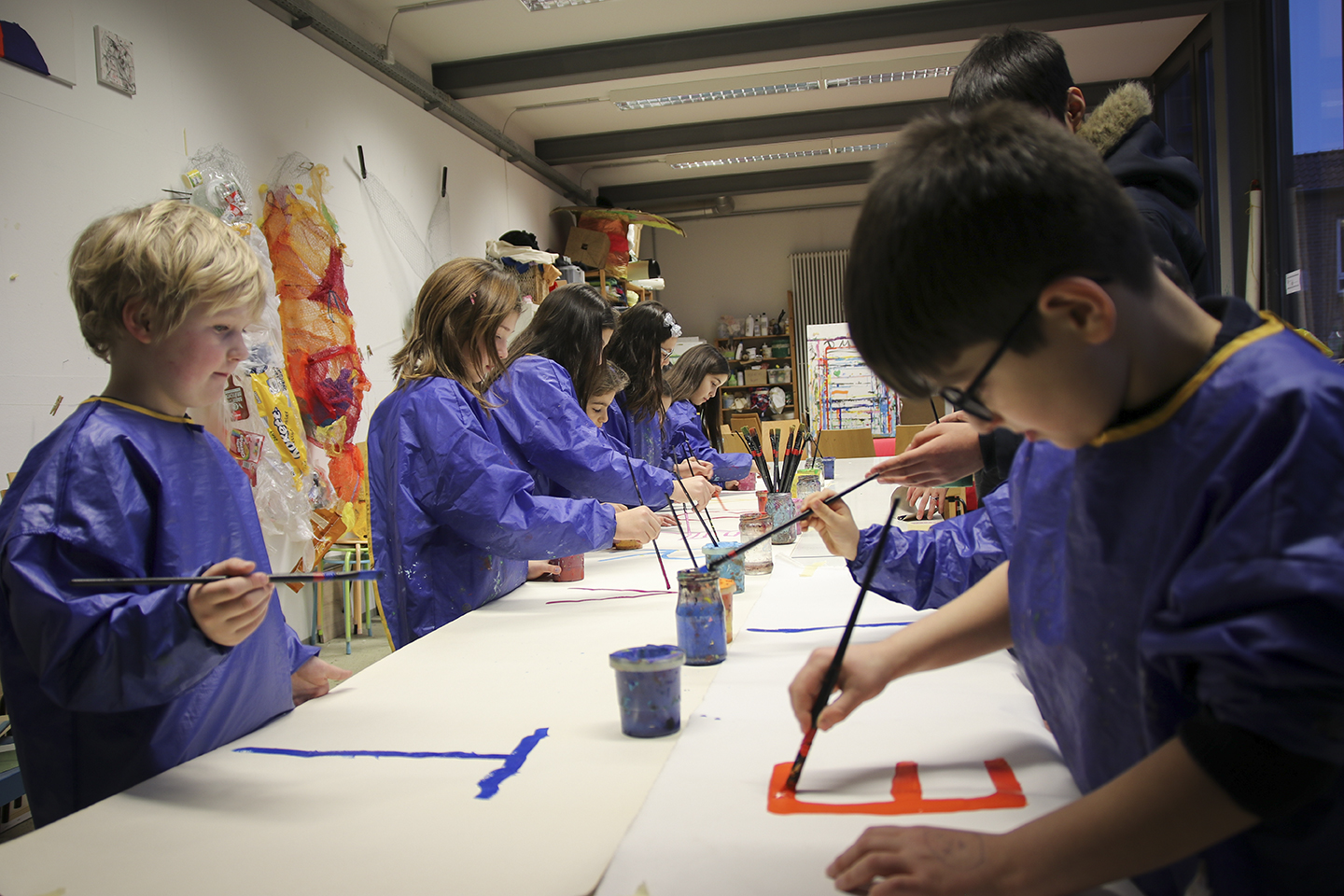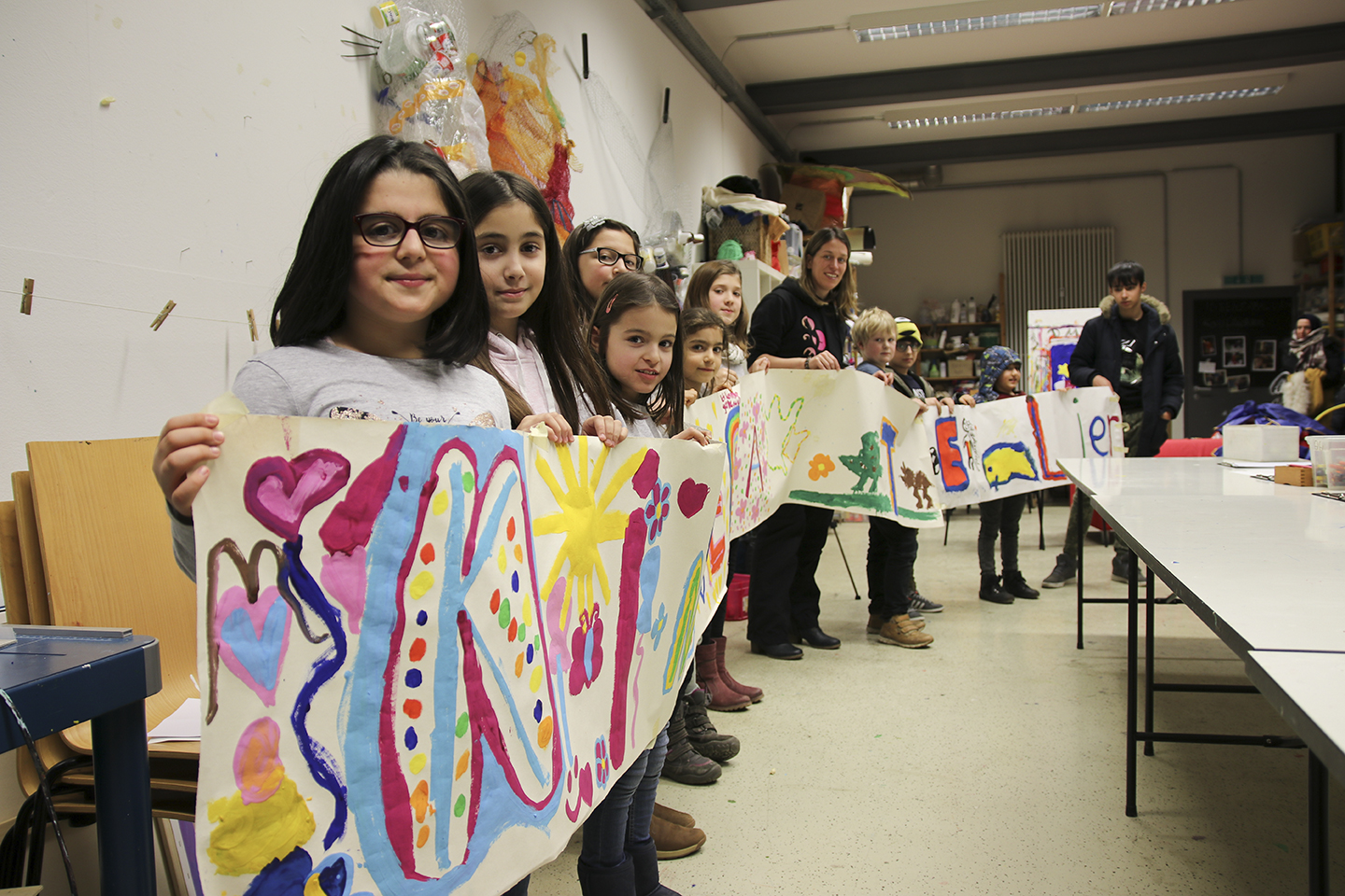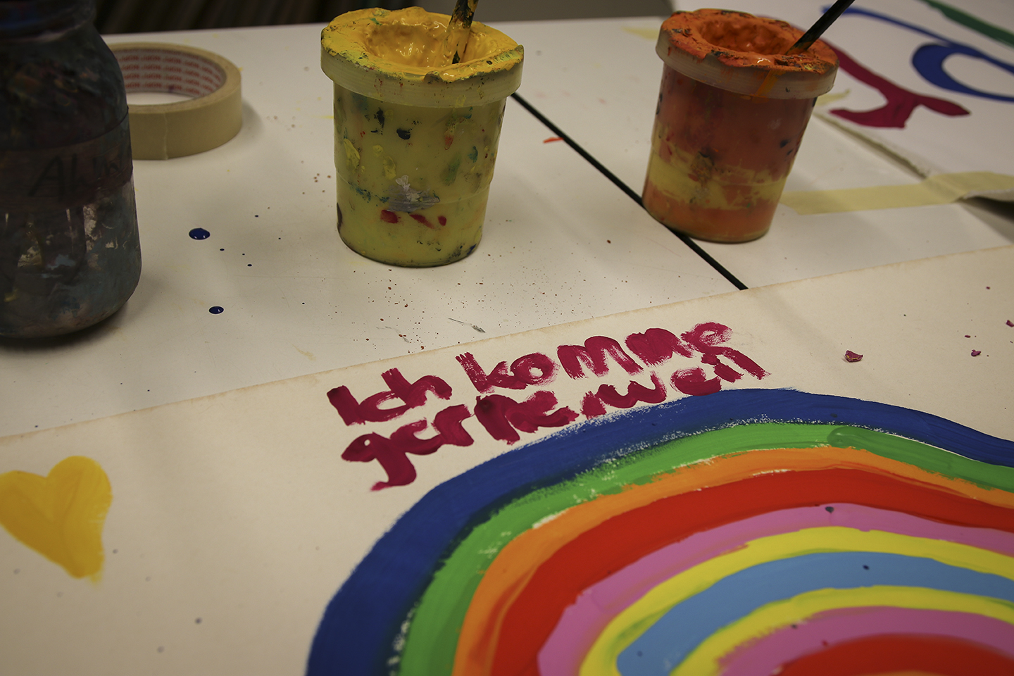 Gestern aber wollten auch einmal die Kinder aus dem Kinderatelier zu Wort kommen. Eine der vielen Gruppen des ABC Kunstprogramms haben zusammen ein Plakat für ihr Atelier gemalt. Wer bei dieser Aktion dabei war, konnte den freudigen Umgang mit der Farbe und den friedlichen Umgang miteinander beobachten. Ein paar der Eindrücke teilen wir hier!