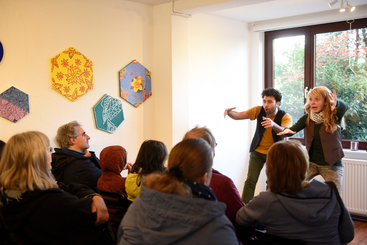 Im internationalen Liegnitzquartier lauern Erzählstoffe, die darauf warten gehört zu werden. Wenn wir erzählen muss sich immer auch ein Stück offenbaren. Als Erzählende sind wir Autor*innen, Regisseur*innen und Darsteller*innen in einer Person. Um die eigenen Ideen in eine guterzählbare Form zu bringen, können wir zurück greifen auf Methoden des Feedbacks und des Coachings. Zentral dabei ist es unsere persönlichen Ressourcen zu stärken und die Kontrolle über den Prozess zu behalten.