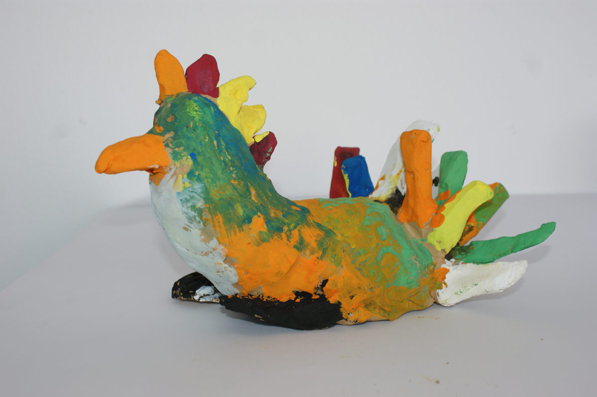 Seit genau 10 Jahren gibt es das Kinder- und Jugendatelier von Kultur vor Ort in der ehemaligen Feuerwache in Gröpelingen. Aus diesem Anlass setzten sich die TeilnehmerInnen der wöchentlich stattfindenden Kurse mit der Figur des roten Hahns und der Geschichte des Hauses auseinander. Wer ist der rote Hahn? Wie ist er nach Gröpelingen gekommen? Und was haben die Bremer Stadtmusikanten damit zu tun?