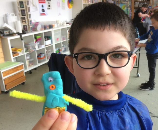 Zurzeit entwickeln die Kinder fliegende Untertassen, modellieren Außerirdische und transformieren Selbstportraits in fremde Wesen. Im Anschluss folgt eine Auseinandersetzung mit dem Bildhauer Robert Schad, der im Gerhard-Marcks-Haus und im Atelierhaus Roter Hahn ausstellt. Da die Stahlarbeiten und Zeichnungen von Robert Schad der Bewegung und dem Tanz gewidmet sind, werden die Kinder tanzende Skulpturen aus Holz bauen.