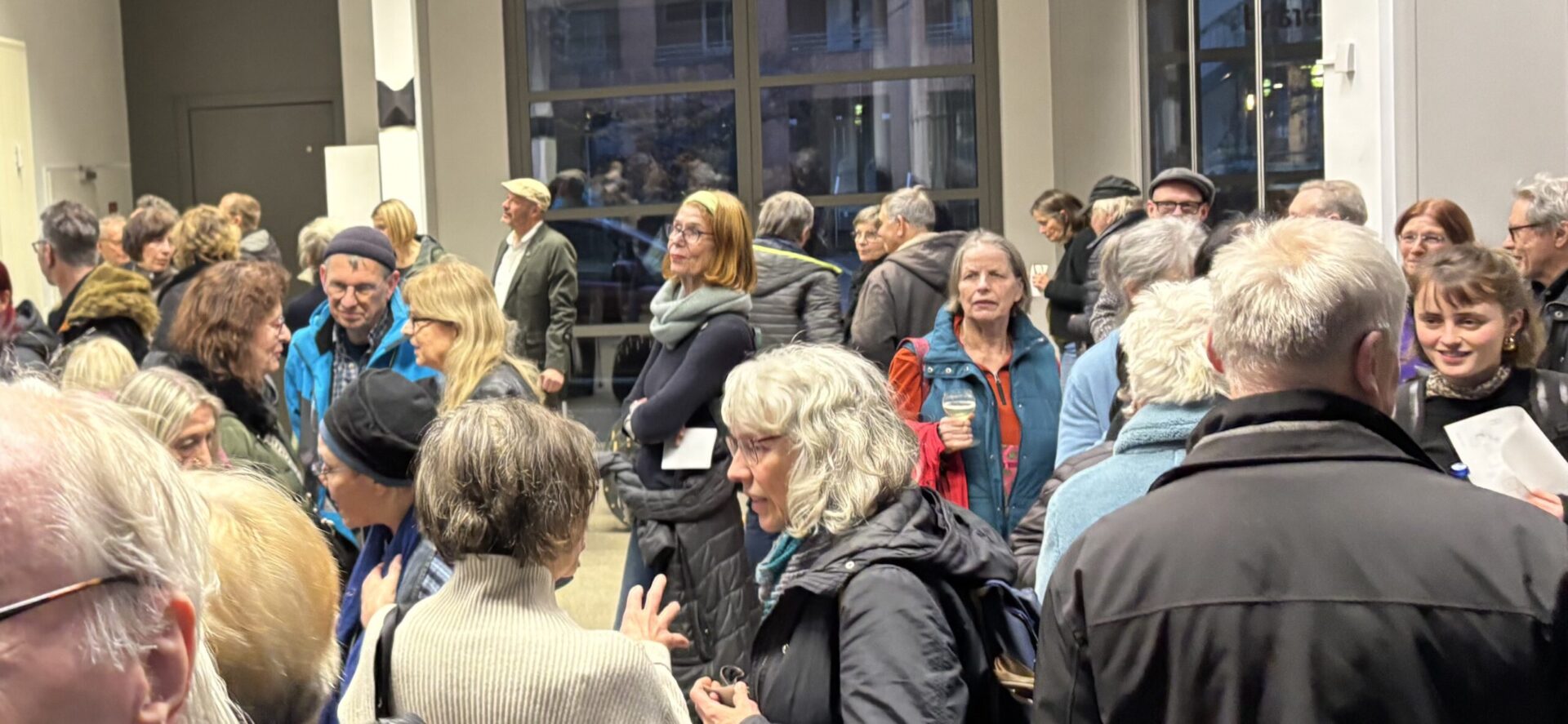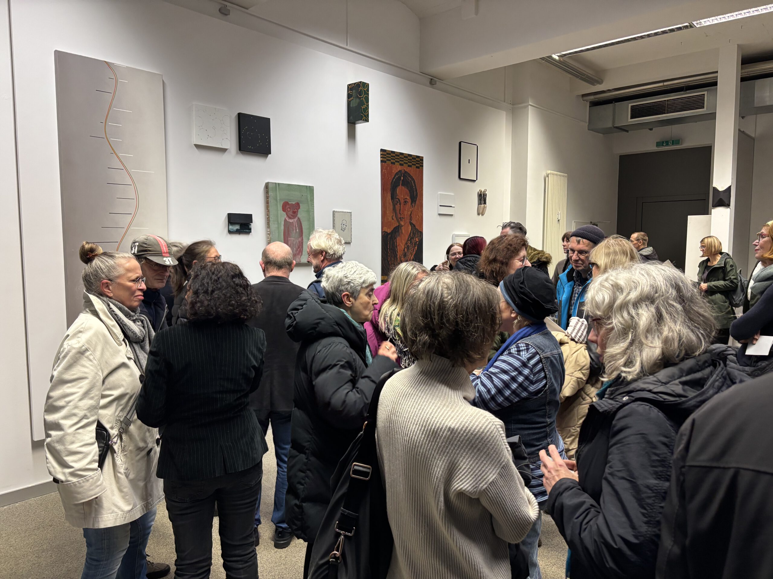 So ist es nicht verwunderlich, dass nach der Ansprache die mehr als 80 Gäste sofort in regen Austausch und Gespräche mit den Künstlerinnen kommen. Man/frau kennt sich, aber kennen alle Gröpelingen und die Galerie? Die meisten der Anwesenden wissen nicht, dass sie sich in einer ehemaligen Feuerwache befinden, die seit 2006 als Künstlerhaus und Galerie genutzt wird und vom Verein Kultur Vor Ort e.V. betrieben wird: Für viele ein Grund noch einmal bei Tageslicht wieder zu kommen.