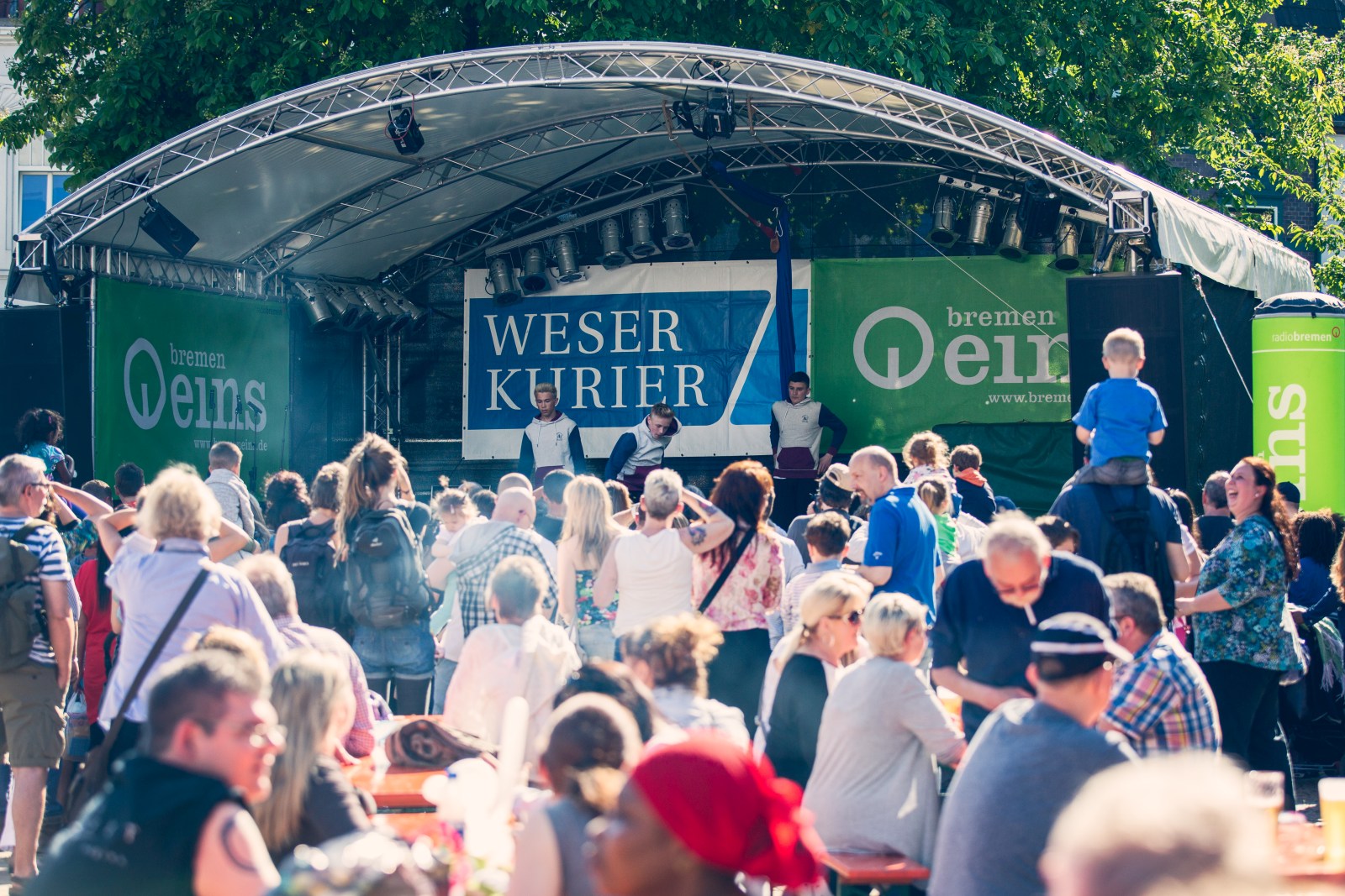 14:00 Eröffnung mit Bremens Bürgermeister Carsten Sieling Fool’s Agony Wagemutig und närrisch, von Soul-Klängen bis Metal-Sound, Stay Foolish! (Musik aus dem Hafen) 15:00 Zumba mit Driton Dance School ZIN-Instrucor KetMoves heizt zum Zuschauen und Mitmachen ein 16:30 Lobster Ein feiner musikalischer Leckerbissen aus Rock und Blues (Musik aus dem Hafen) 20:00 Serdal Sakar So wie seine Heimatstadt Mersin berühren seine populären Songs die Herzen. Plötzlich fühlt man sich wie in einer warmen Sommernacht. 21:00 Pohlmann Sein neues Album „Weggefährten“ gehört zu dem Besten, was der deutsche Musikmarkt zurzeit hergibt! Ein Hochgenuss des klassischen SingerSongwritertums!