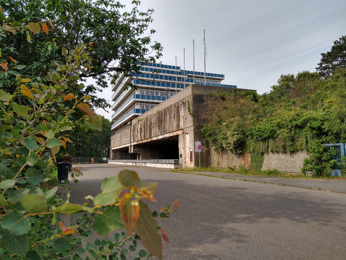 Im Bremer Stadtteil Gröpelingen leuchtet hoch zwischen Weser und Industriehafen ein elegantes weißblaues Gebäude. Es wurde 1968 als Verwaltungsgebäude der Speditionsfirma Lexzau, Scharbau & Co errichtet. Sein aus dem Wasser ragendes Fundament aus mächtigen grauen Betonmauern sollte einst zunächst ein riesiges Dock für den Bau von Schlachtschiffen, dann eine verbunkerte Werft für den Bau von U-Booten werden.