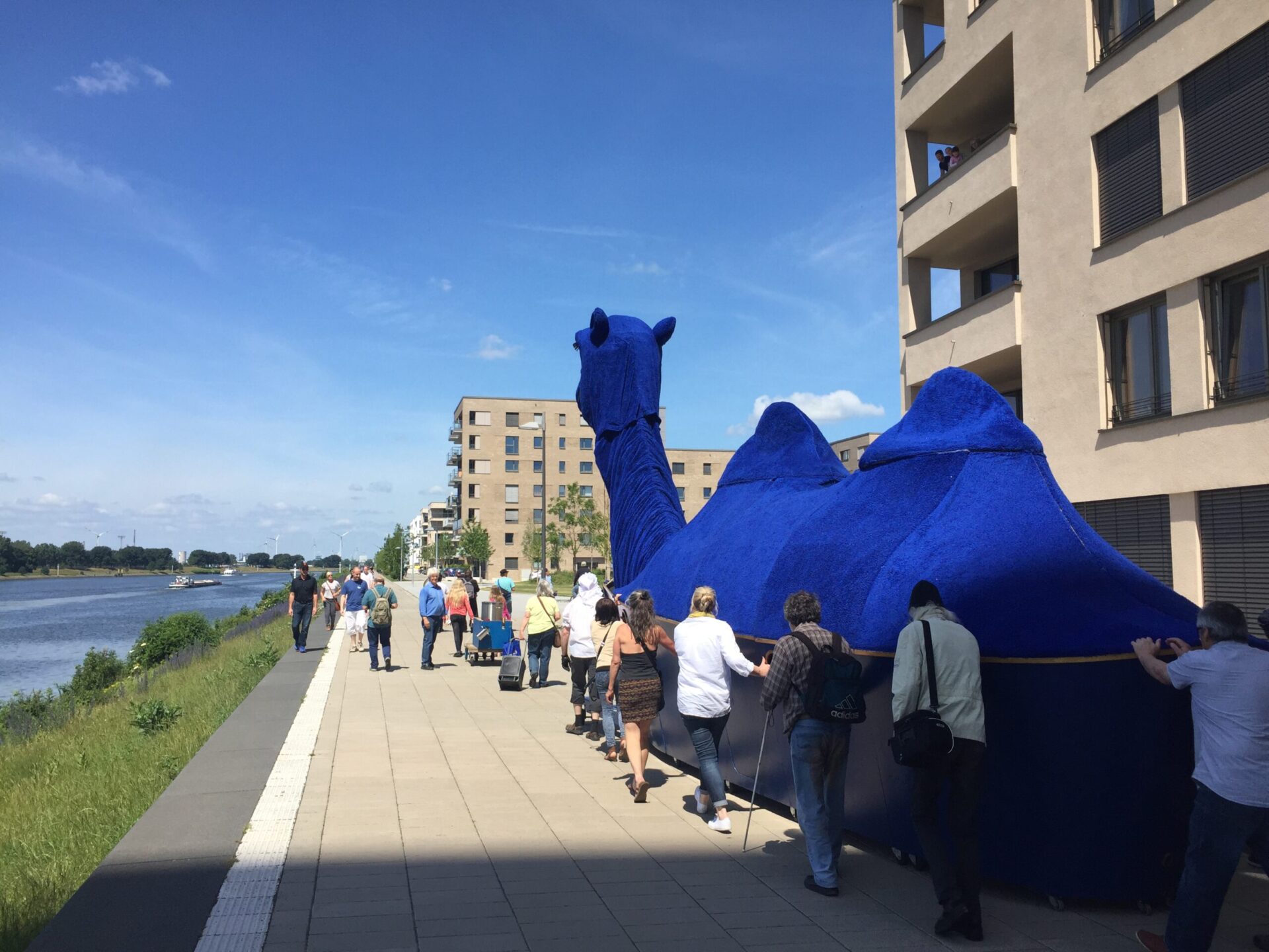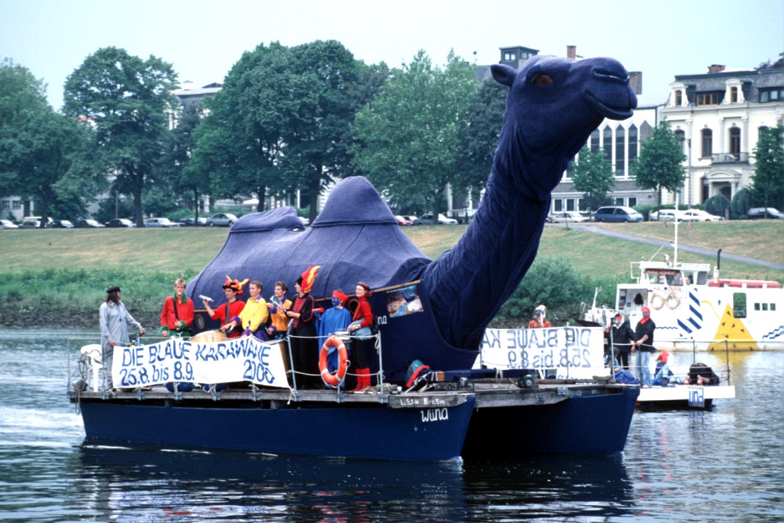 Die Blaue Karawane e.V. ist ein Verein in Bremen, der seit vielen Jahren kulturelle und soziale Projekte initiiert und durchführt. Der Verein ist bekannt für seine inklusiven Ansätze und Angebote, die Menschen mit und ohne Behinderung zusammenbringen. Die Blaue Karawane bietet Workshops, Veranstaltungen und Projekte an, die Kunst, Kultur und Gemeinschaft fördern. Ein weiteres Highlight ist das große Blaue Kamel Wüna, das Symbol der Blauen Karawane e.V., von dem ihr beim Picknick mehr erfahren könnt.“