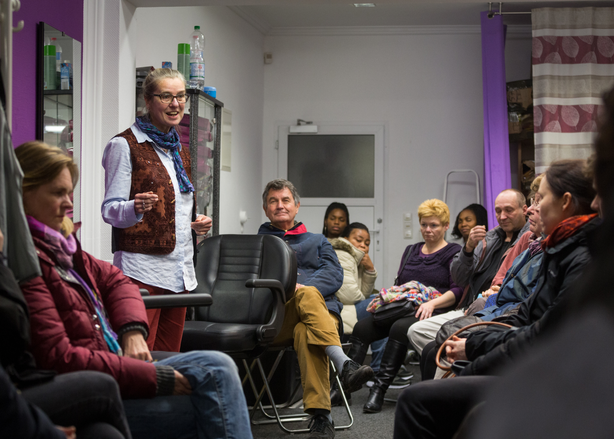 In allen zur Verfügung stehenden Sprachen wird am 6.11.2022 entlang der Lindenhofstraße vom Einsteigen, Umsteigen und Aussteigen erzählt. Die Vorbereitungen dazu finden in Werkstätten und Kursen statt: