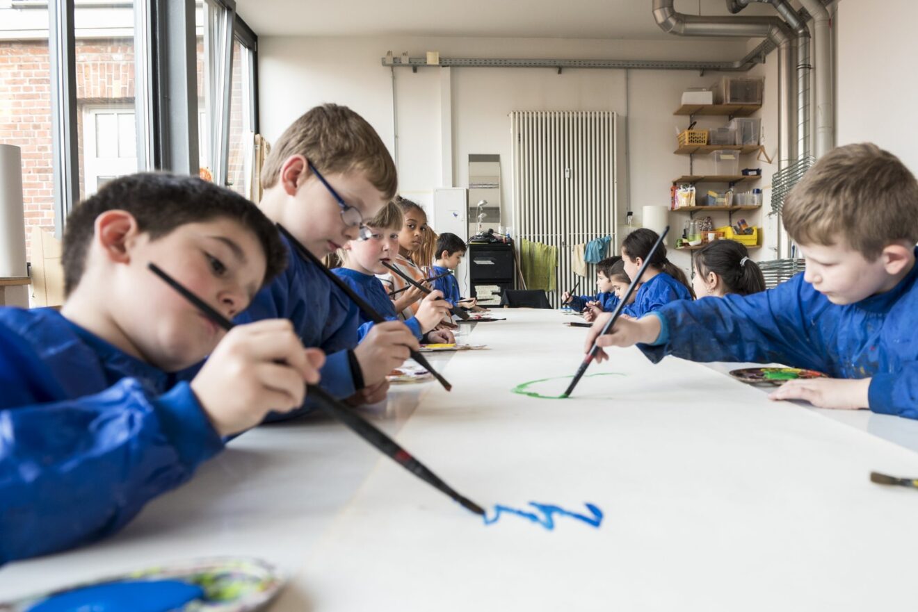 Die Kurse beginnen im Vorschulalter. Selbständiges Arbeiten, z.B. Drucken, Sägen und Malen die unterstützen den Forschergeist der jüngsten im Atelier. Grundschüler/-innen erproben im KLEKS Atelier malerische und bildnerische Techniken, während Jugendliche sich in verschiedenen Projekten mit Künstler/-innen und Ausstellungen auseinandersetzen und in der freien Kunstwerkstatt eigene Arbeiten auf hohem Niveau entwickeln.