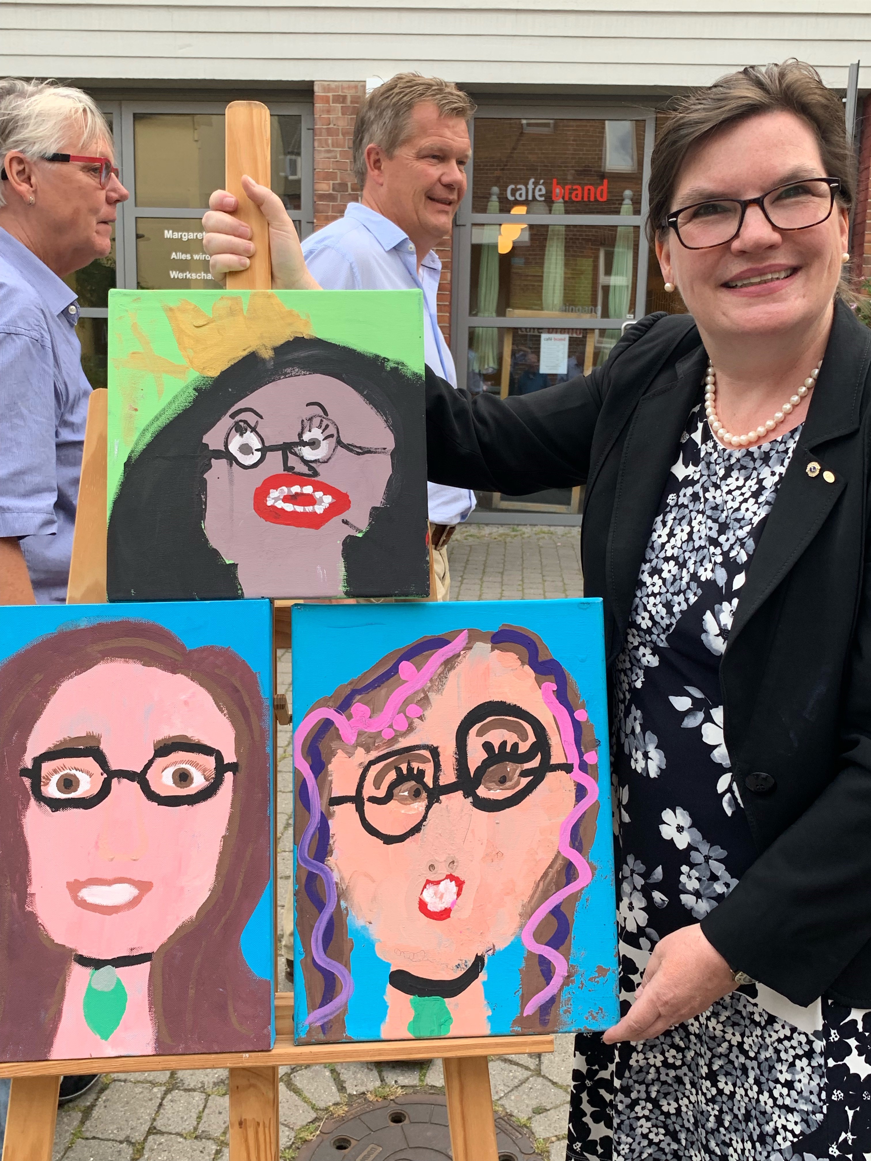 Besonders begeistert zeigte sich die Präsident des Clubs Claudia Kühne über die Portraits, die die Kleksgruppe in den letzten Wochen erarbeitet hatte.