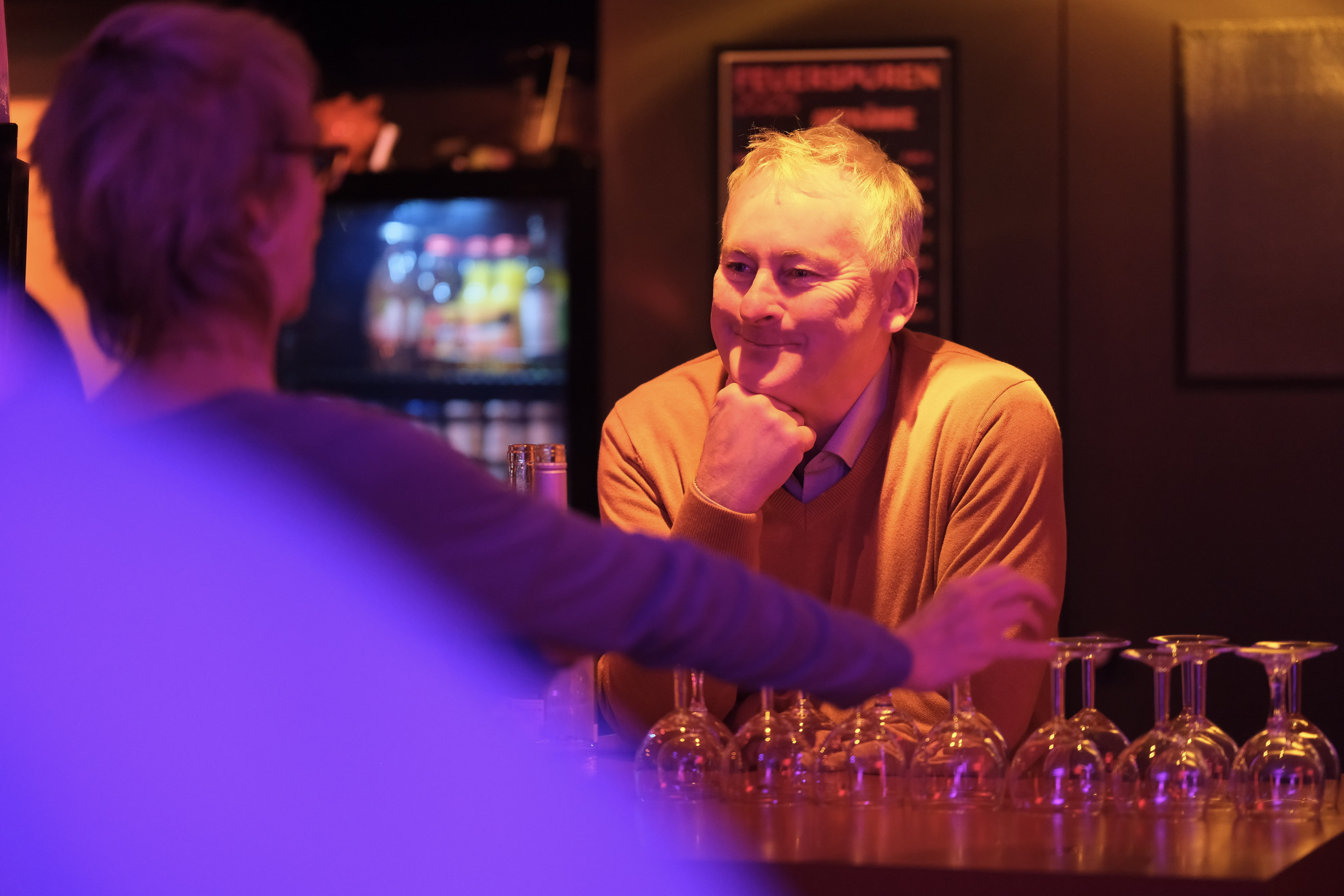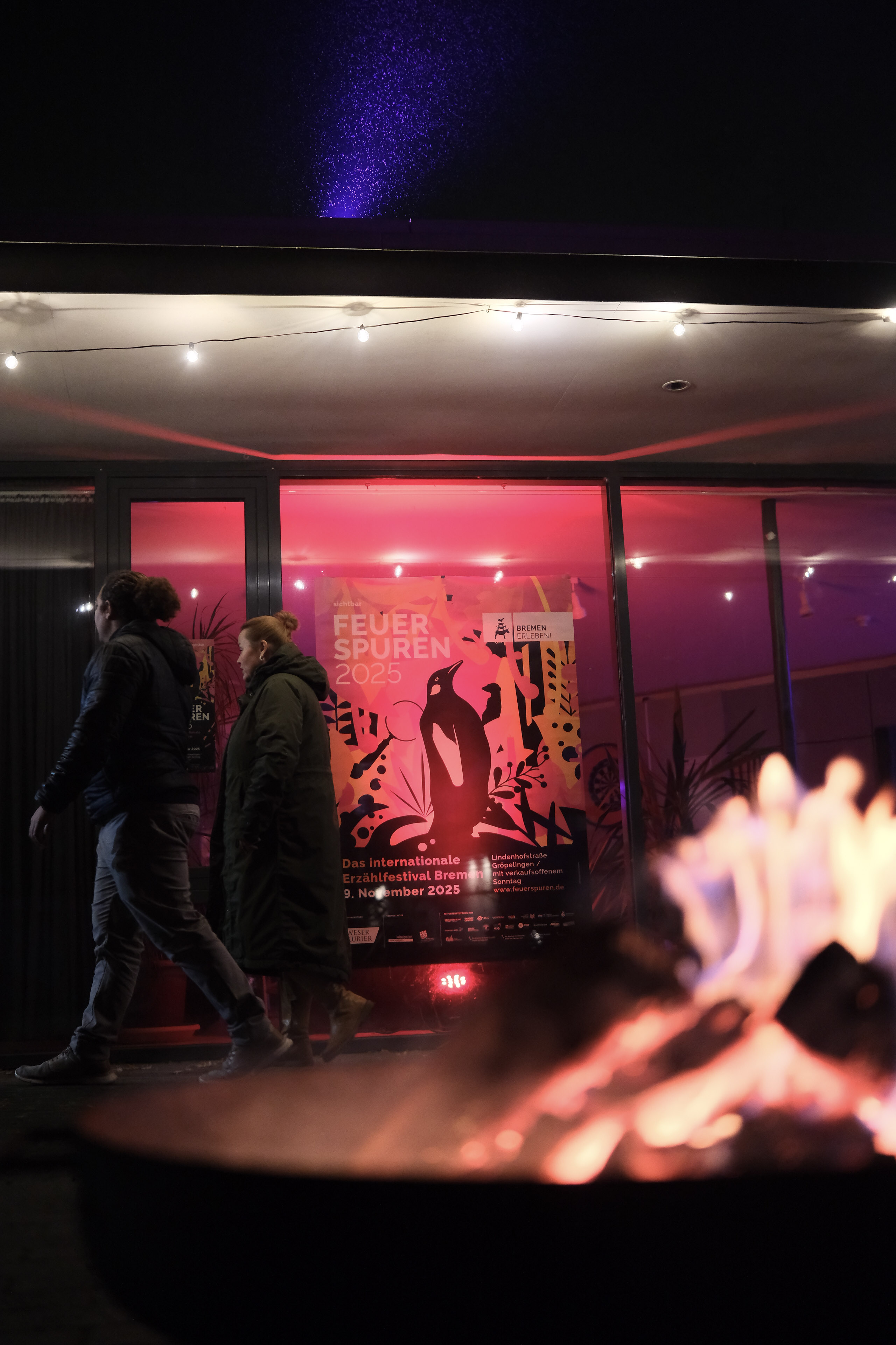 Der Ortswechsel sorgte teilweise für Erstaunen, denn seit Beginn des Festivals fand die Veranstaltung im Lichthaus Bremen statt. Nun empfing mit pink-orangen Lichtspots, flackernden Feuerschalen und einer XXL-Champignons Pfanne die Bürgerhaus-Crew erstmalig das neugierige Publikum am Eingang.