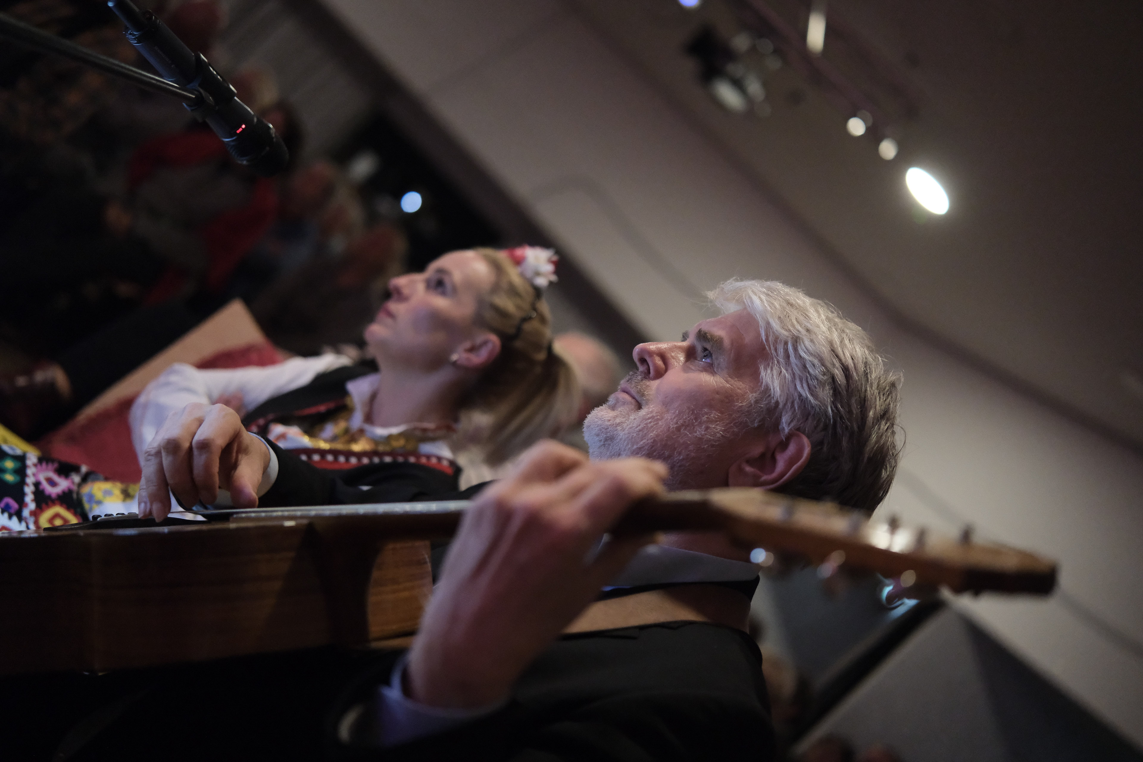 Und sie legt sofort los mit einer fulminanten Geschichte über den Pinguin, der als Key Visual das Feuerspuren-Plakat ziert. Diesen Pinguin gibt es wirklich. Der anonym arbeitende Künstler Mohammed Smith (benannt nach den verbreitetsten Namen der westlichen und östlichen Welt, so einfach geht friedliche Koexistenz) stellte ihn 2024 als Bronzeskulptur in Gröpelingen auf. Das niedliche Tier hat einen bitteren Hintergrund. Es erinnert an die Toten der Gezi-Park-Proteste 2013 in Istanbul, wo fünf junge Menschen von Sicherheitskräften erschossen wurden. Statt Nachrichten zeigte das Fernsehen Dokumentationen über Pinguine, fortan Symbol für Anti-Erdogan-Proteste. Dass der Gröpelinger Pinguin mangels Standsicherheit allerdings seit über einem Jahr von der Behörde aus dem Verkehr gezogen wurde, ruft sogar den empörten Geist von Alt-Bürgermeister Hans Koschnick auf den Plan. Istanbul und der großen Sängerin Sezen Aksu zollt anschließend Andy Einhorn Tribut mit der Ballade „Kücügüm“. Auch die Beatles und Hank Williams hat der Gitarrist im Gepäck.