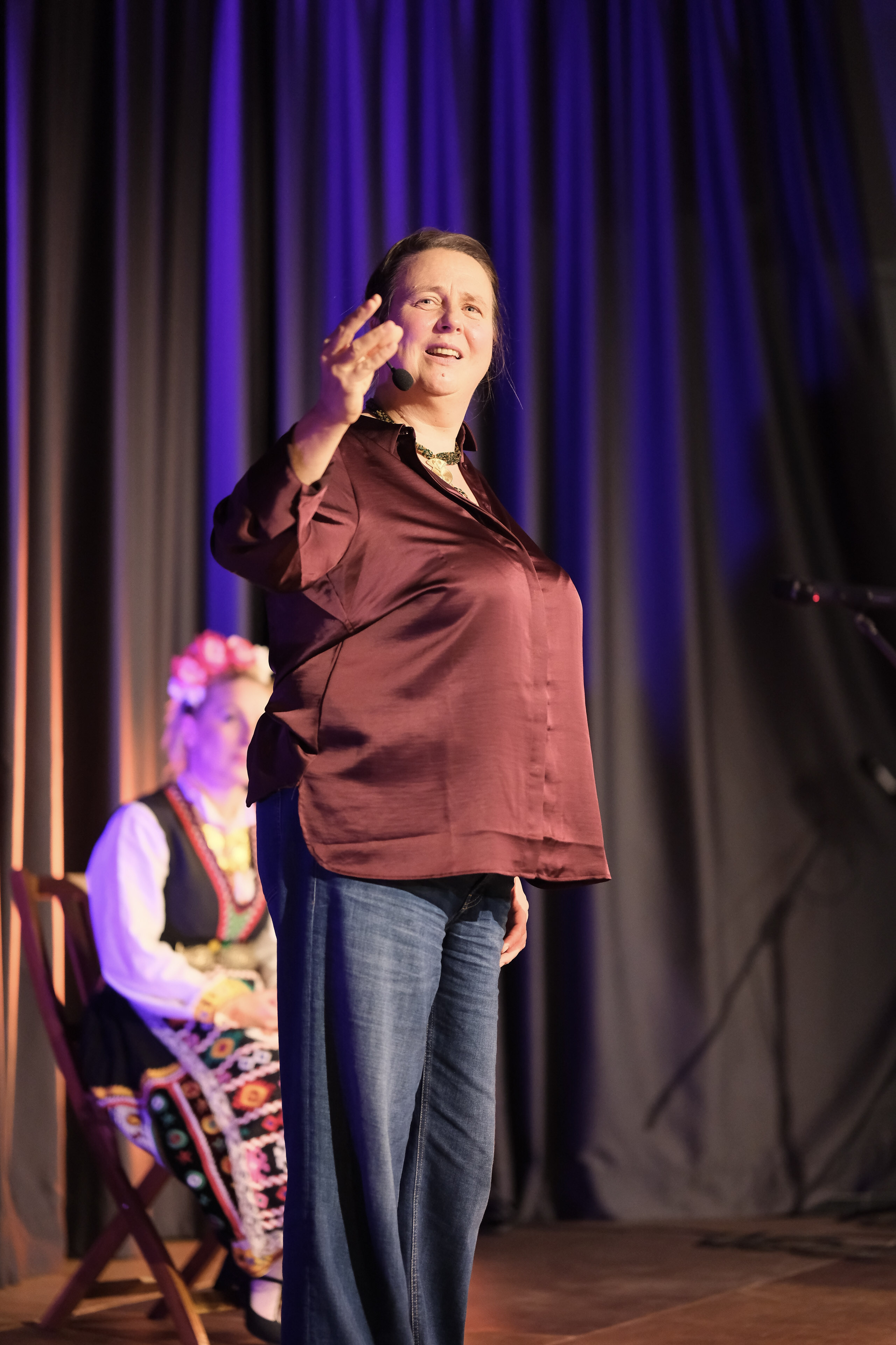 Noch prominenter als Koschnick und (zumindest temporär) in Gröpelingen beheimatet, ist die Baba Marta, auf Deutsch „Oma März“, eine Figur der bulgarischen Mythologie, die den Frühling ankündigt. Unerkannt sitzt sie gerne auf einem Monobloc-Stuhl und beobachtet mit wachen Äuglein das Stadtbild. Julia Klein schildert, dass man ihr zu Ehren „Marteniza“, rot-weiße Bändchen webt und verschenkt, die im Frühjahr an blühende Zweige gehängt oder unter Steine gelegt werden. Bei den Bändchen stehen die Farben symbolhaft für rote Wangen und weiße Haare, also für Gesundheit und langes Leben. Musikalisch gerahmt und atmosphärisch verdichtet wird die Erzählung von virtuosem Kopfton-Gesang, den Radka Raykova acapella auf Bulgarisch präsentiert.