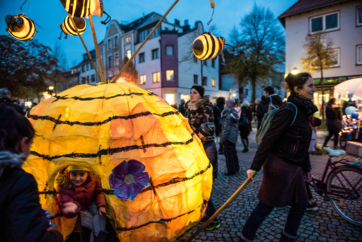 Das Mobile Atelier wird in den Herbstferien zur Lichterwerkstatt. Zu dem diesjährigen Thema des internationalen Erzählfestivals Feuerspuren „Um die Ecke“ können Kinder ab 6 Jahren im Bewohnertreff Rostocker Straße, im Kunstkiosk und in der Stadtbibliothek West Lichtobjekte und Laternen bauen. In Begleitung von ihren Familien werden sie den Feuerspuren-Umzug am 3. November zum Leuchten bringen.