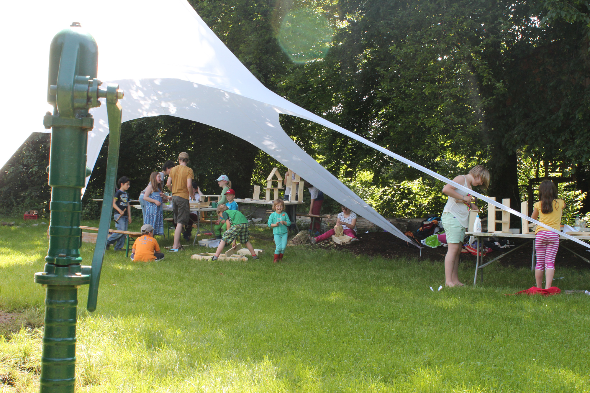 Zusammenkommen, spielen, schnitzen, Knoten lernen, Feuer machen, Steine bemalen und Biwakbau.