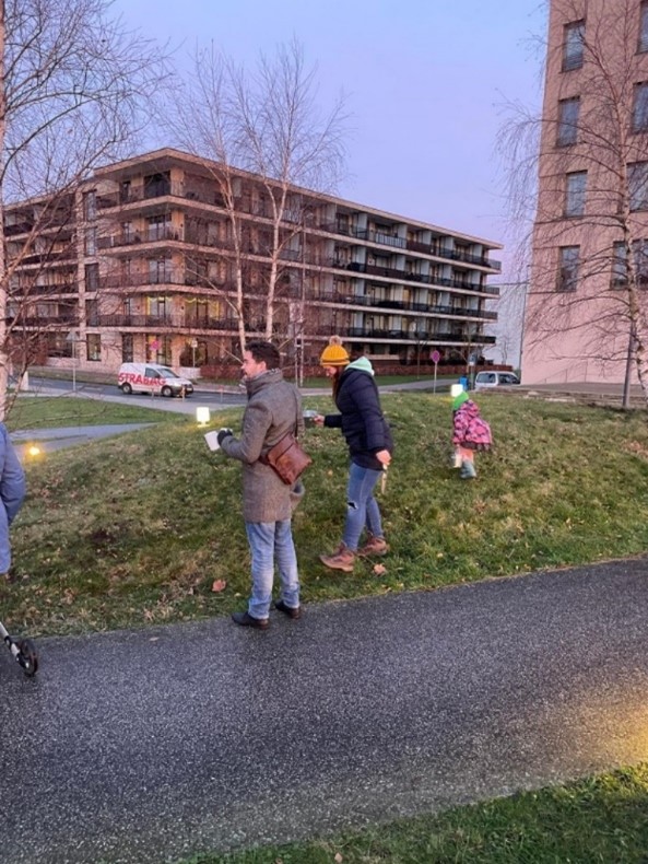 Am 8., 15. und 16. Dezember fanden gleich drei PflanzMobs für und mit Nachbar:innen in der Überseestadt statt. Dafür wurden ca. 1000 Tüten mit Einladungen und Krokussen in die anliegenden Briefkästen eingeworfen.Die Pflanzaktionen fanden an der Überseewiese, an der Marcuskaje und im Überseepark statt. Vor Ort mit einem Promo-Bike und Tannenbaum ist das neue JETZT HIER Team mit den Anwohner:innen ins Gespräch gekommen. Manche folgten der Einladung, andere sind spontan stehen geblieben und haben mit uns bei einem Apfelpunsch über das Thema Nachbarschaften in der Überseestadt gesprochen. Dabei kamen viele spannende Themen auf, die die Menschen in der Überseestadt beschäftigen: