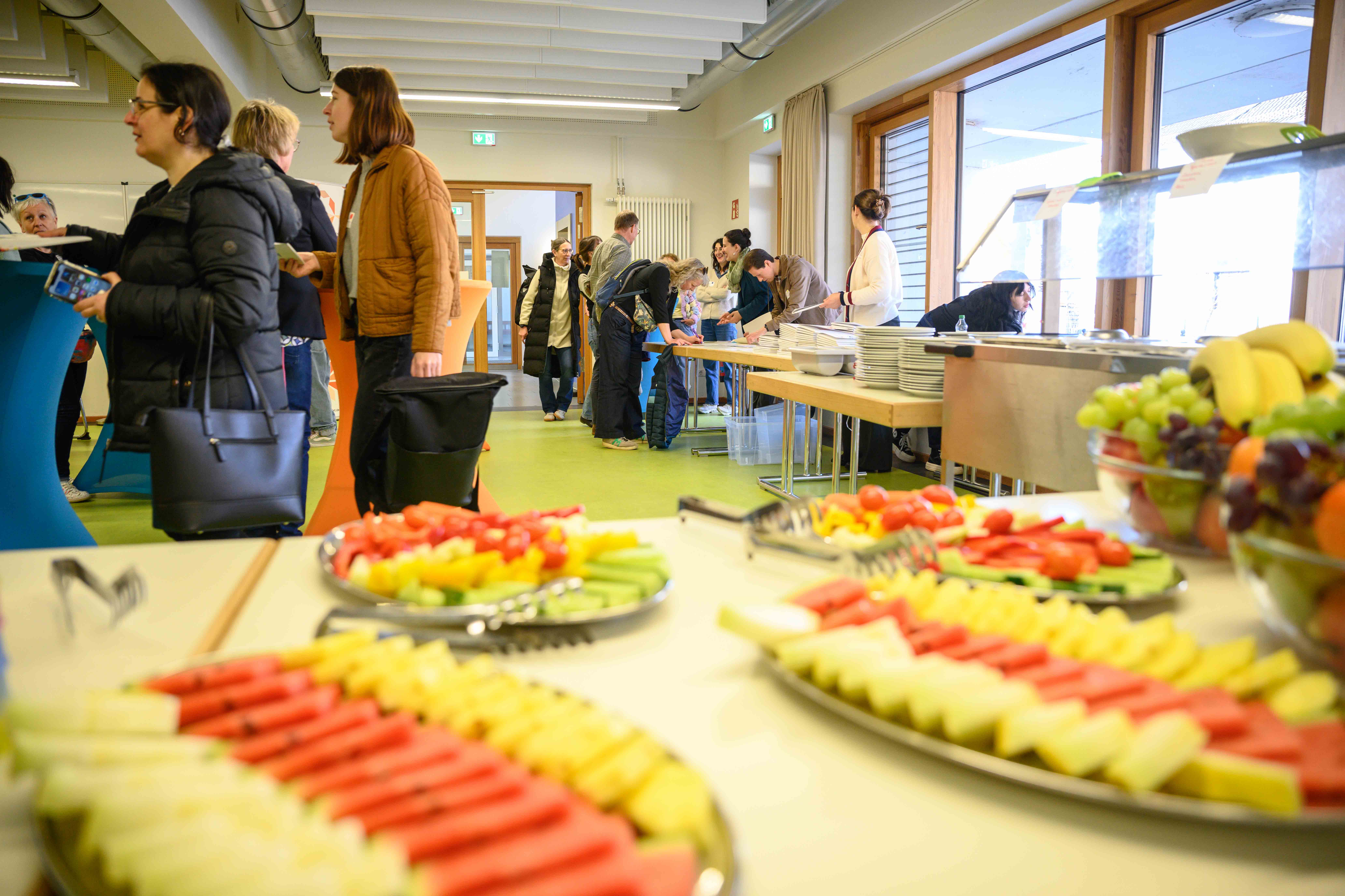 Schon vor Veranstaltungsbeginn nutzten viele der Teilnehmenden das Angebot des Get Together bei einem gemeinsamen Mittagsimbiss. Der freundliche und angeregte Austausch untereinander machte deutlich, wie stark die Vernetzung der Gröpelinger Bildungslandschaft über die Jahre gewachsen ist. Umso schöner, dass wieder ein Thema aufgegriffen wurde, mit dem die Kolleg:innen der Bildungseinrichtungen tagtäglich konfrontiert sind, nämlich die Armut vieler Kinder und Jugendlichen im Stadtteil.
