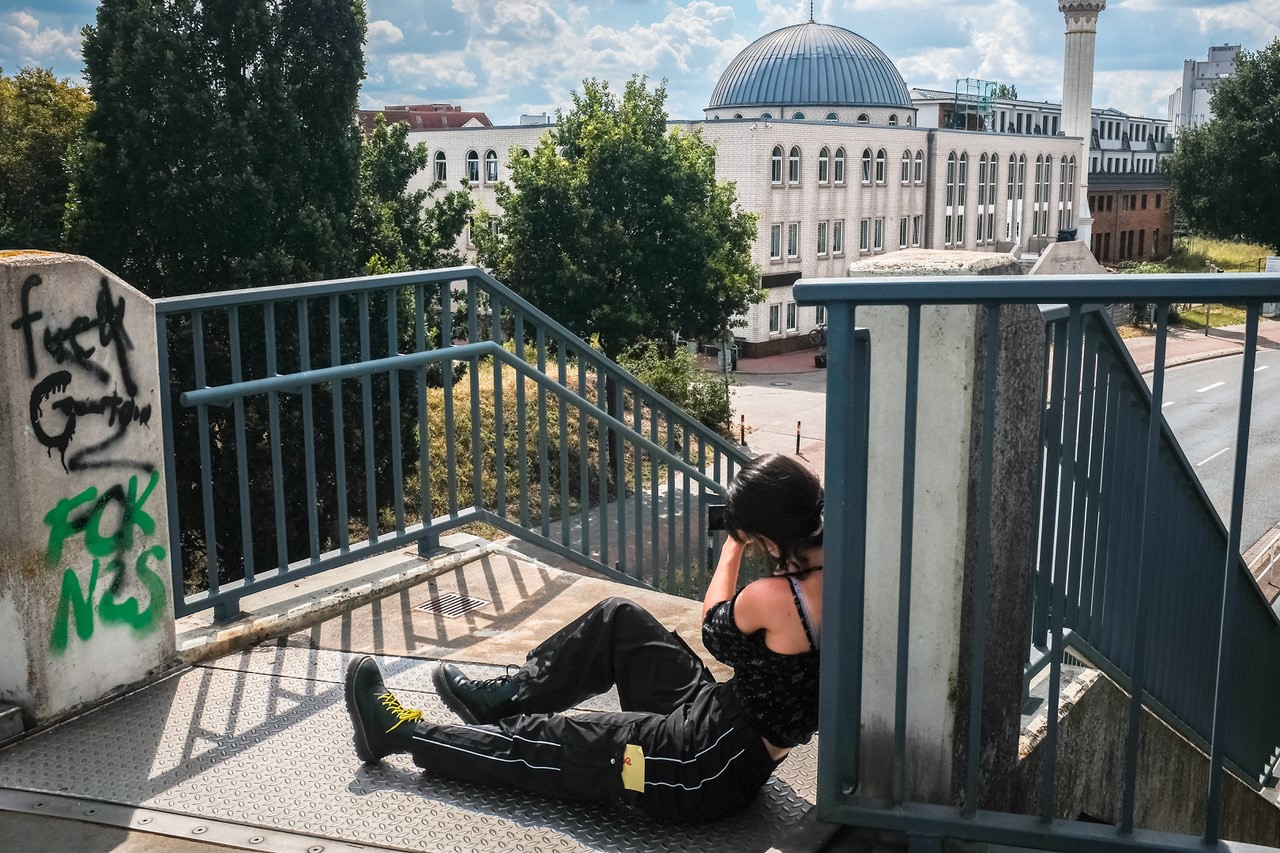 Am ersten Tag wurden die Funktionen von analogen und digitalen Spiegelreflexkameras erkundet, um dann draußen im Quartier auf Foto- und Audiotour zu gehen. Die Bilder und Sounds sind spitze geworden! Am zweiten Tag entstand die Filmidee, einen Videospaziergang durch das Liegnitzquartier zu zeigen. Für alle, die neu im Quartier sind, haben die Teilnehmenden mehrere Passant*innen mit dem Mikrofon interviewt. Am dritten Tag Tag wurden dann die Route und das Storyboard fertiggestellt, um weitere Szenen mit der Videokamera zu drehen und Orte mit dem Feldrekorder aufzunehmen. Der Schnitt inklusive allen Texten, Nachbearbeitungen und dem Soundtrack erfolgte am vierten Tag im großen Saal des Torhaus Nord. Am fünften und letzten Tag haben die Teilnehmenden dann noch beim Digital Impact Lab 3D-Animationen programmiert, die direkt in den fertigen Film eingefügt wurden.