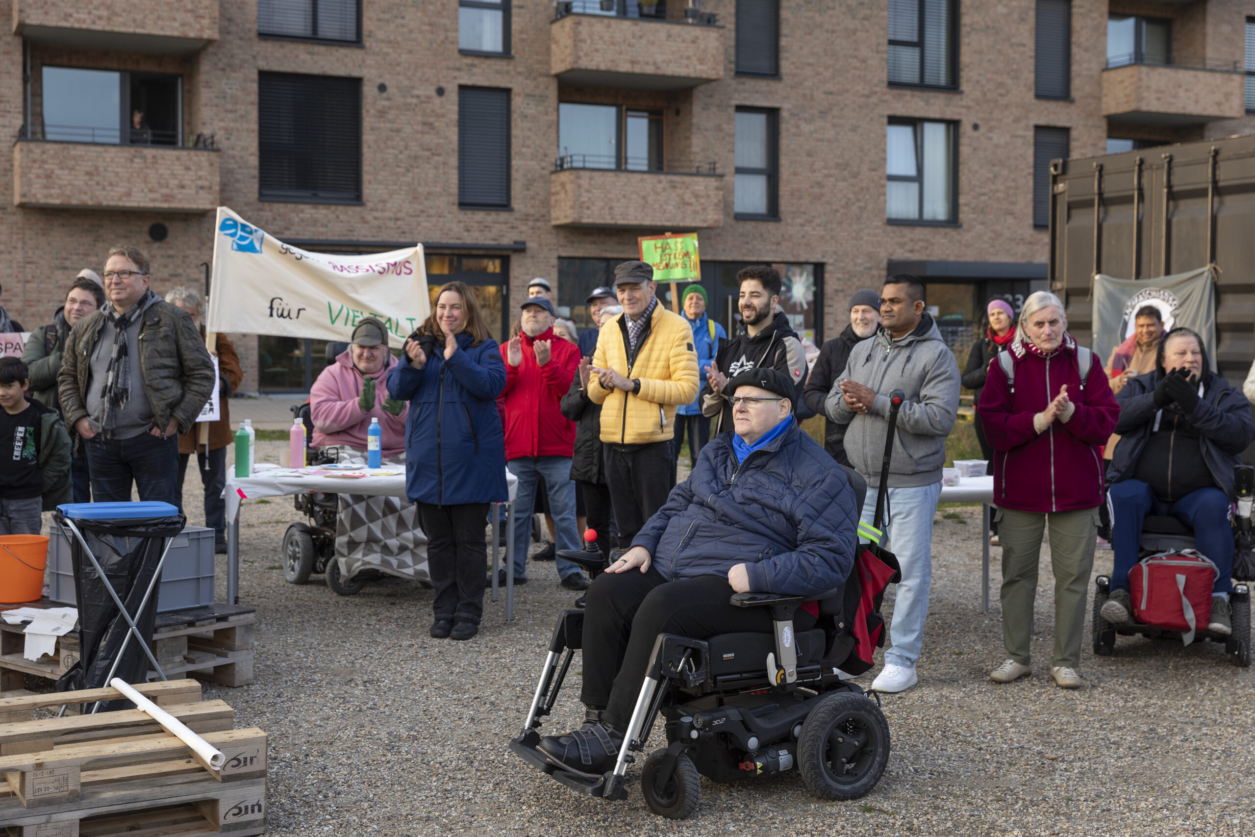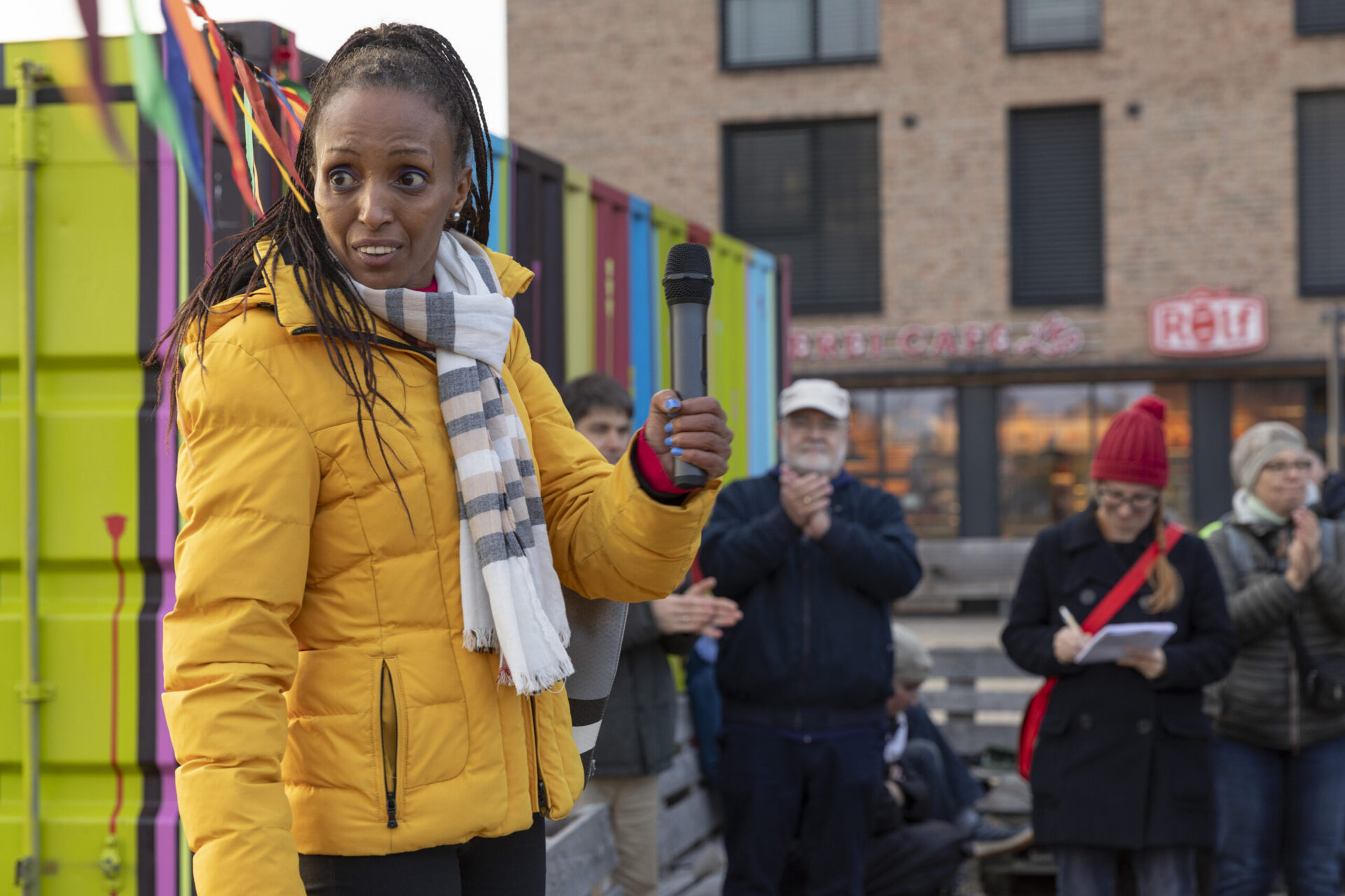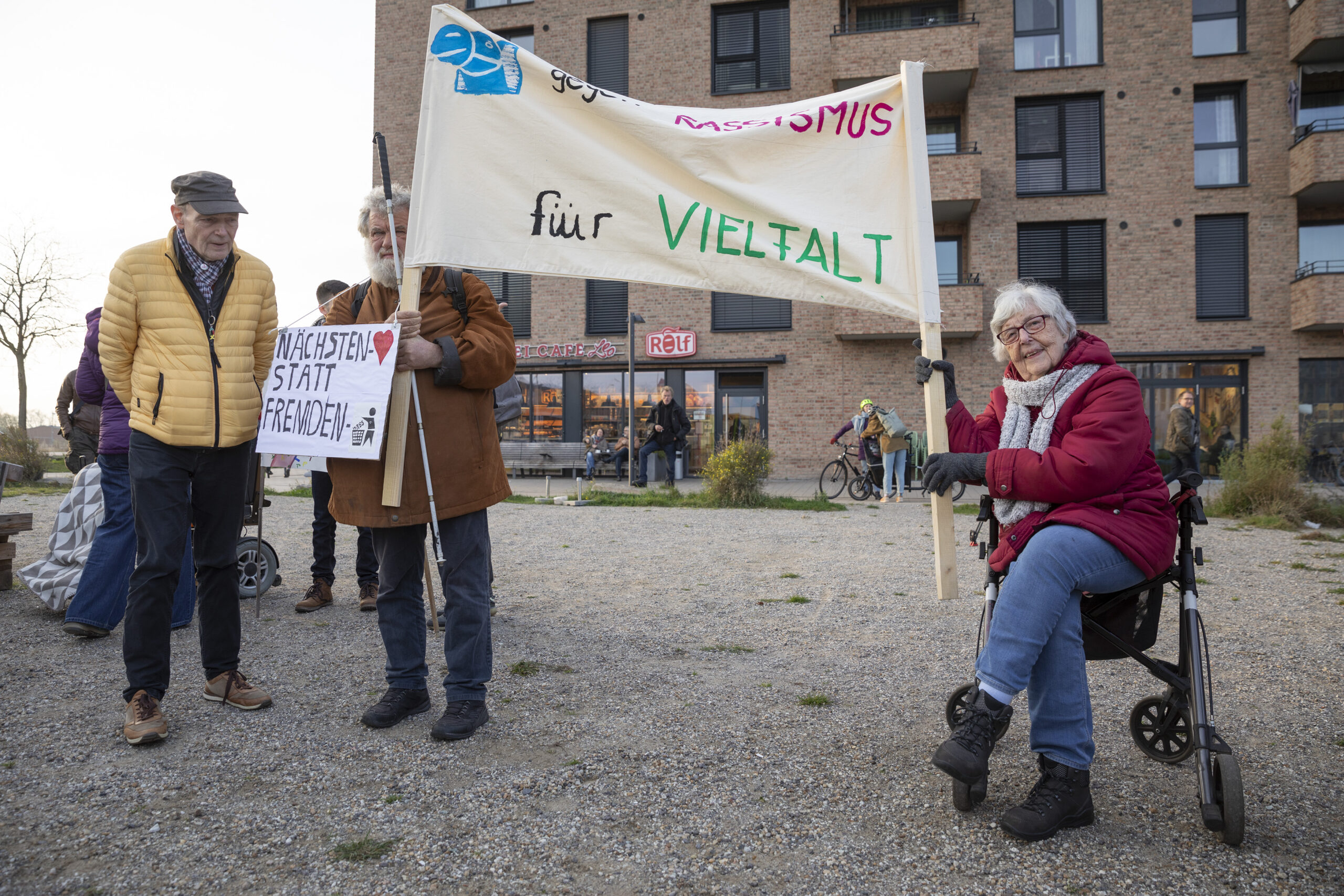 Am 5. November kamen in der Überseestadt über 60 Menschen zu einer Solidaritätsaktion zusammen, um sich gemeinsam gegen Rassismus und für Vielfalt in unserer Nachbarschaft starkzumachen. Die Aktion wurde von der Überseekirche und Jetzt Hier (Kultur Vor Ort e.V.) ins Leben gerufen. Anlass waren anonyme, rassistische Anfeindungen, die in den letzten Wochen in Briefkästen in der Überseestadt und in Walle aufgetaucht sind. Die Solidaritätsveranstaltung war ein erster Schritt, um ein klares Zeichen für Zusammenhalt und Unterstützung zu setzen. Nachbar:innen, Unterstützer:innen und Interessierte waren aufgerufen, durch ihre Teilnahme ein sichtbares Zeichen für Gemeinschaft und gegen Ausgrenzung zu setzen.