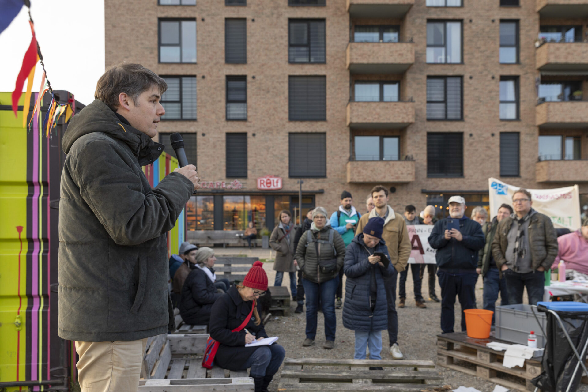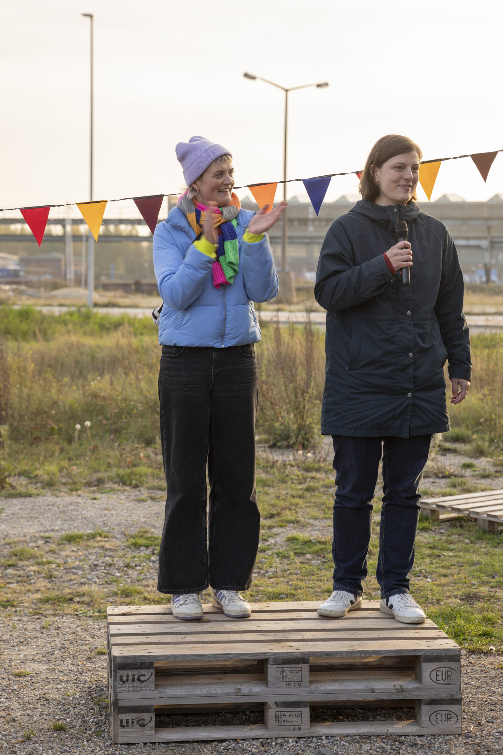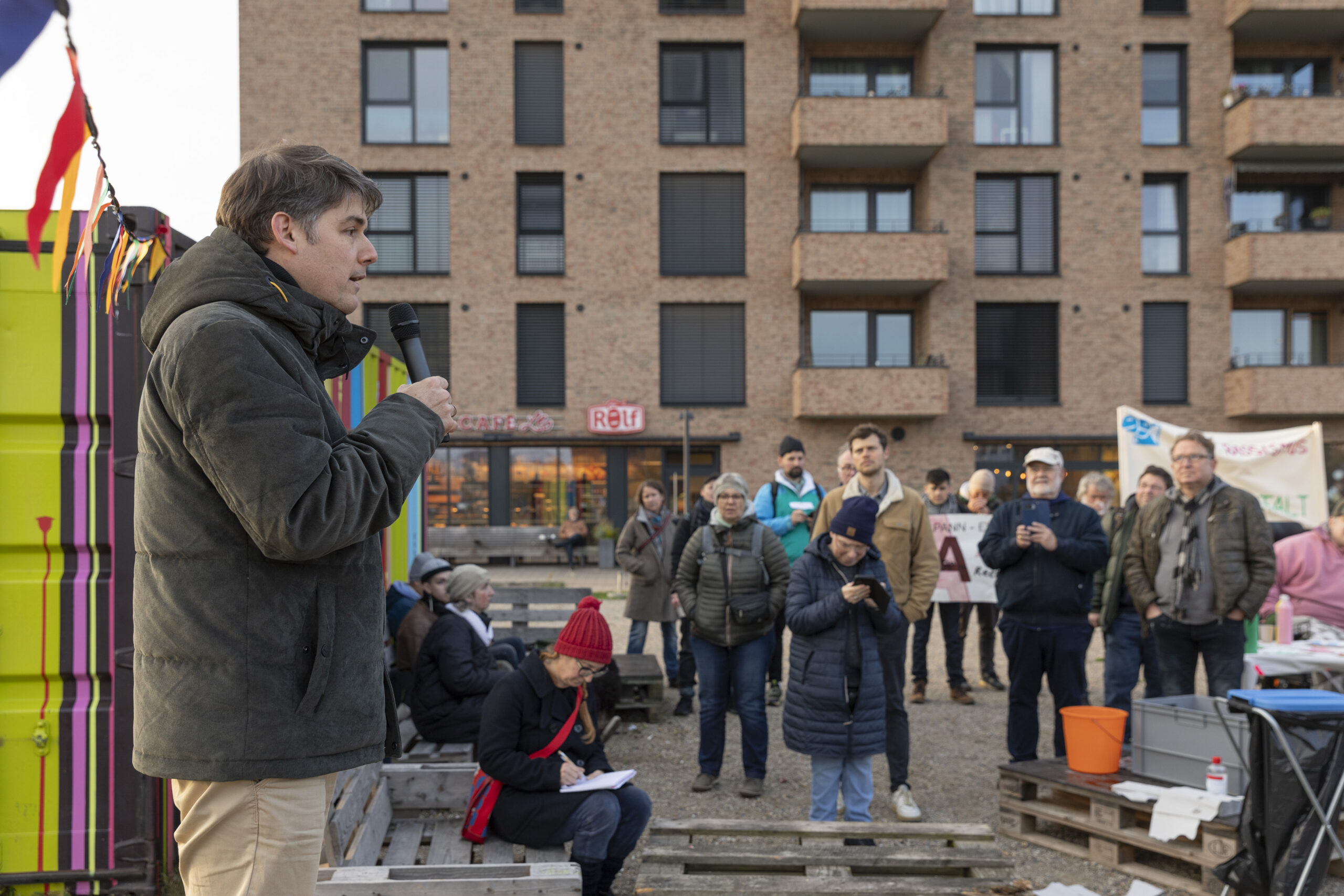 Am 5. November kamen in der Überseestadt über 60 Menschen zu einer Solidaritätsaktion zusammen, um sich gemeinsam gegen Rassismus und für Vielfalt in unserer Nachbarschaft starkzumachen. Die Aktion wurde von der Überseekirche und Jetzt Hier (Kultur Vor Ort e.V.) ins Leben gerufen. Anlass waren anonyme, rassistische Anfeindungen, die in den letzten Wochen in Briefkästen in der Überseestadt und in Walle aufgetaucht sind. Die Solidaritätsveranstaltung war ein erster Schritt, um ein klares Zeichen für Zusammenhalt und Unterstützung zu setzen. Nachbar:innen, Unterstützer:innen und Interessierte waren aufgerufen, durch ihre Teilnahme ein sichtbares Zeichen für Gemeinschaft und gegen Ausgrenzung zu setzen.