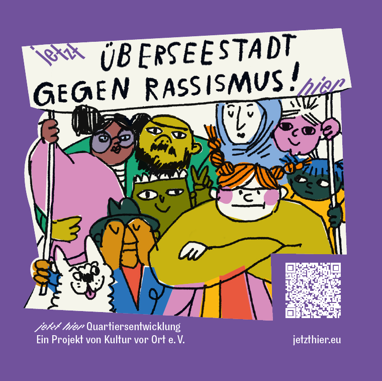 Allen, die von rassistischen Anfeindungen betroffen sind, möchten wir dringend empfehlen, dies bei der Polizei anzuzeigen (Telefon 0421-362-12700). Hier in der Überseestadt stehen euch auch Nina Kleinsorge von der Überseekirche und Svenja Weber von Jetzt Hier als Ansprechpartnerinnen zur Seite. Für weitergehende, anonyme Unterstützung können sich Betroffene auch an Beratungsstellen wie Soliport in Bremen wenden, die kostenfreie und vertrauliche Hilfe anbieten (weiter unten weitere Beratungsstellen).