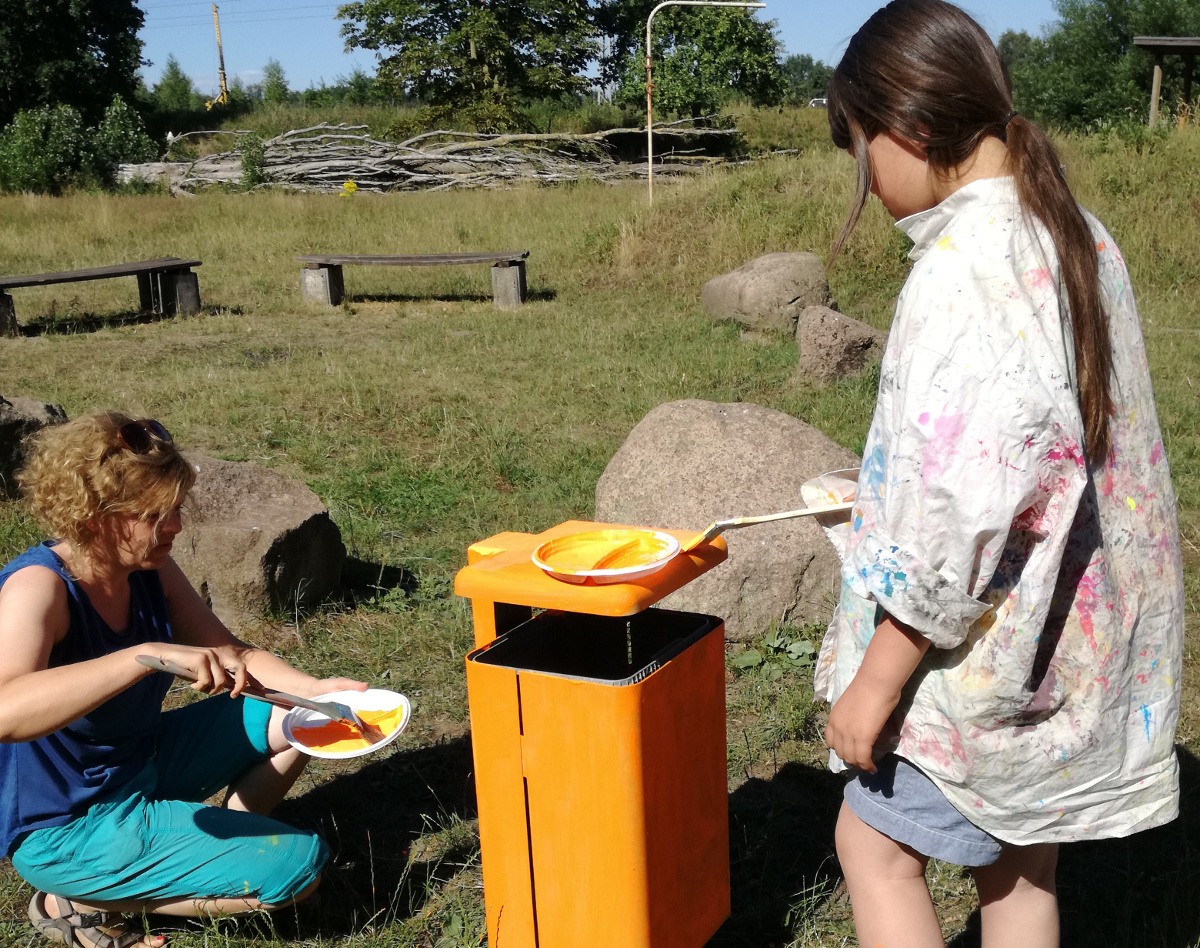 Sport und Spiel ist auch in diesem Sommer das Motto, mit dem die Behälter verschönert werden. Die Mosaikplatten werden am letzten gemeinsamen Aktionstag verlegt. Wer neugierig auf die Ergebnisse ist, könnte sie vor Ort ab sofort suchen, finden und bestaunen!