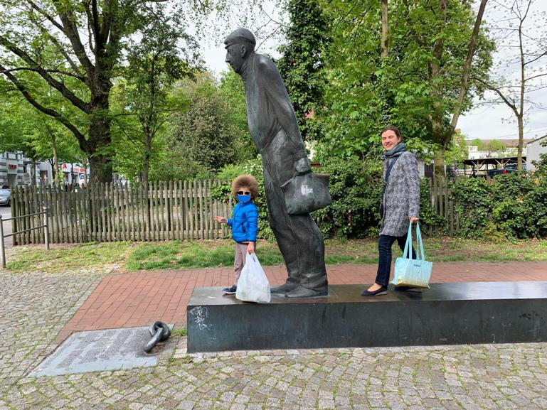 Versucht es doch selbst einmal. Stellt euch vor die Skulptur in der gleichen Haltung, macht ein Foto und postet es in die Kommentare.