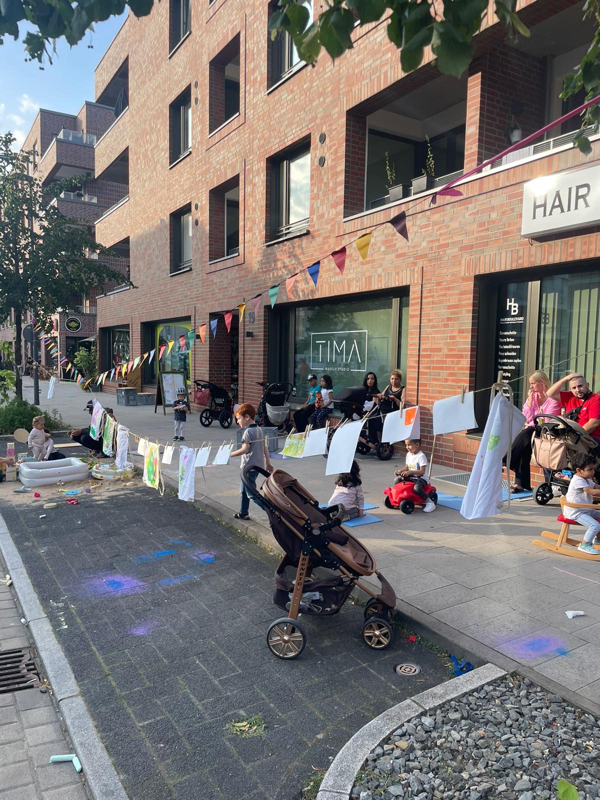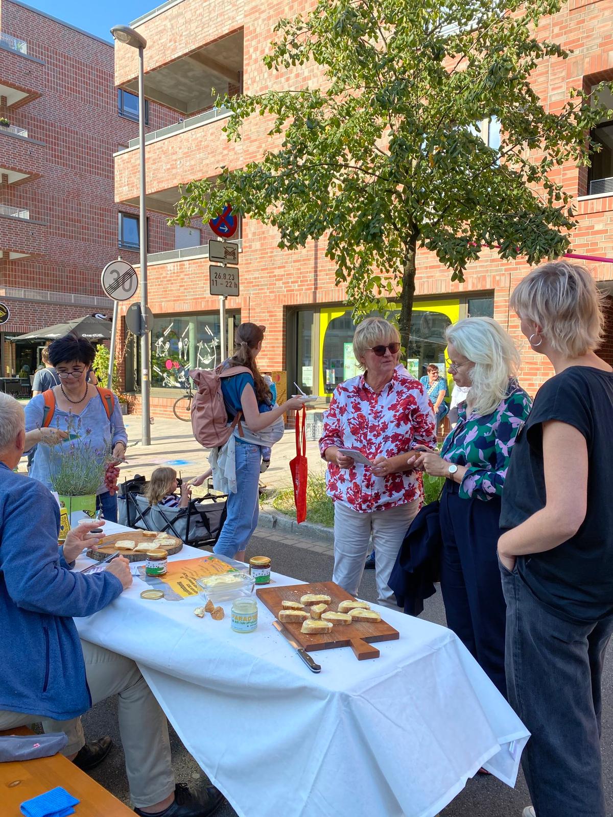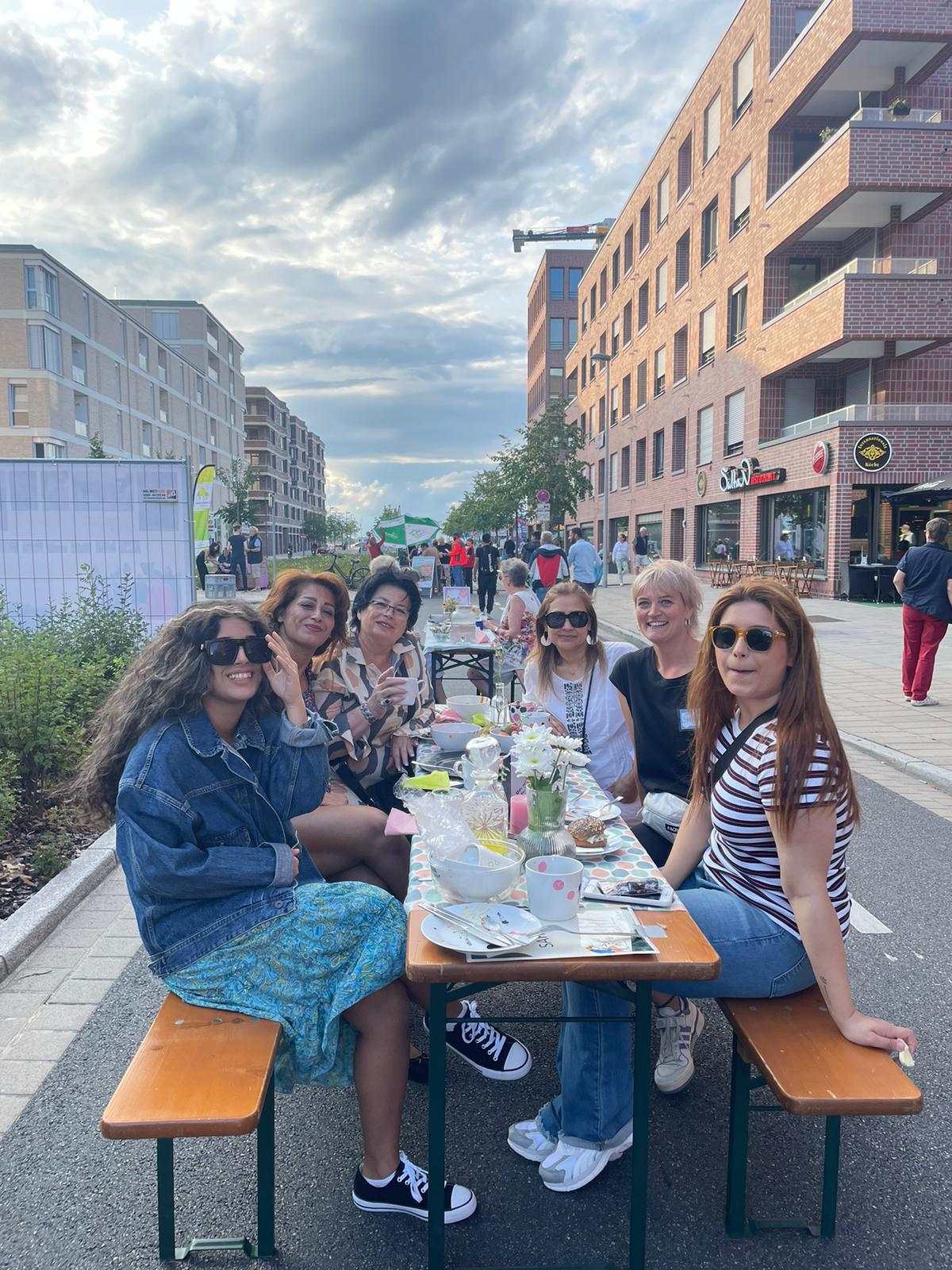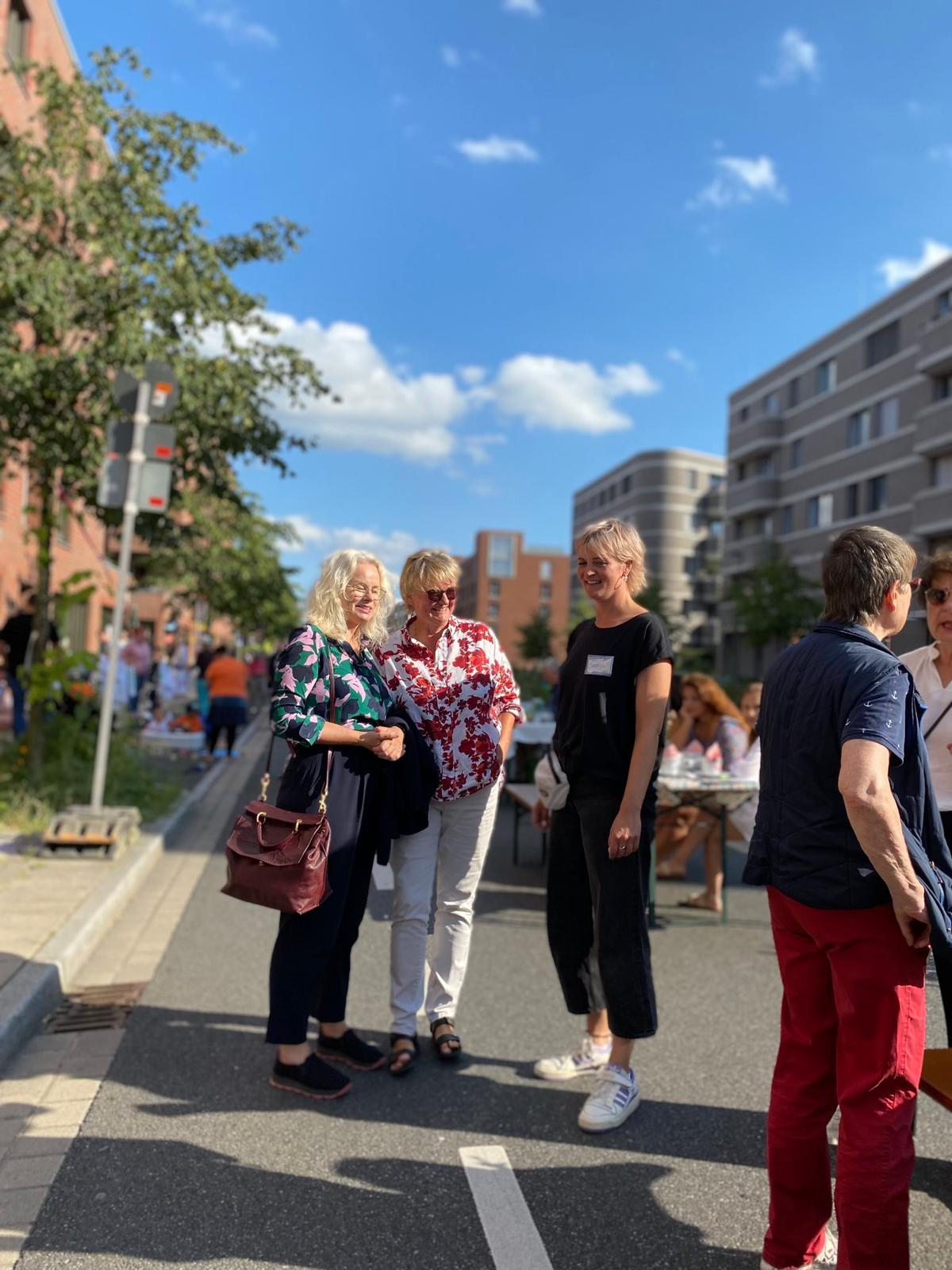 Die zahlreichen Tische wurden von den Nachbar:innen, Gruppen, Vereinen und Firmen bunt und vielfältig eingedeckt. Auf dem bunten Boulevard entstand so eine schöne und lebhafte Atmosphäre, geprägt von Gesprächen, Diskussionen und fröhlichem Miteinander.