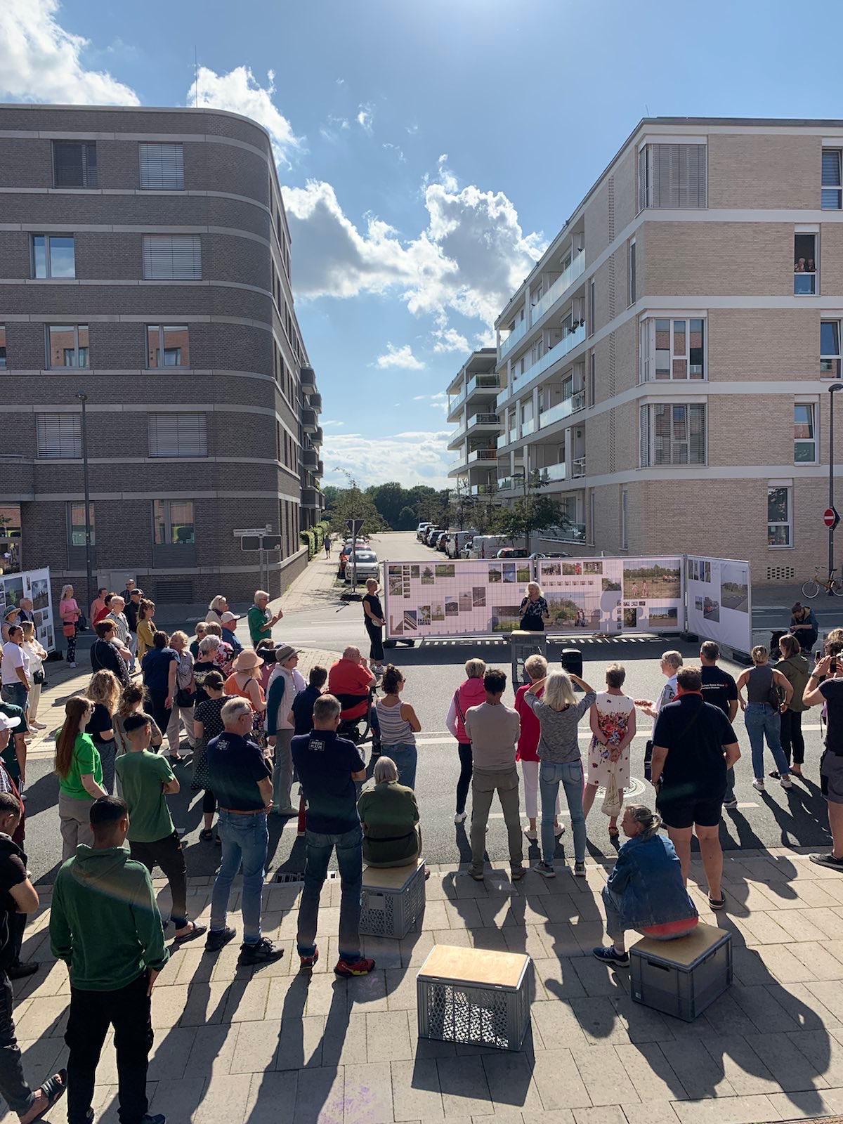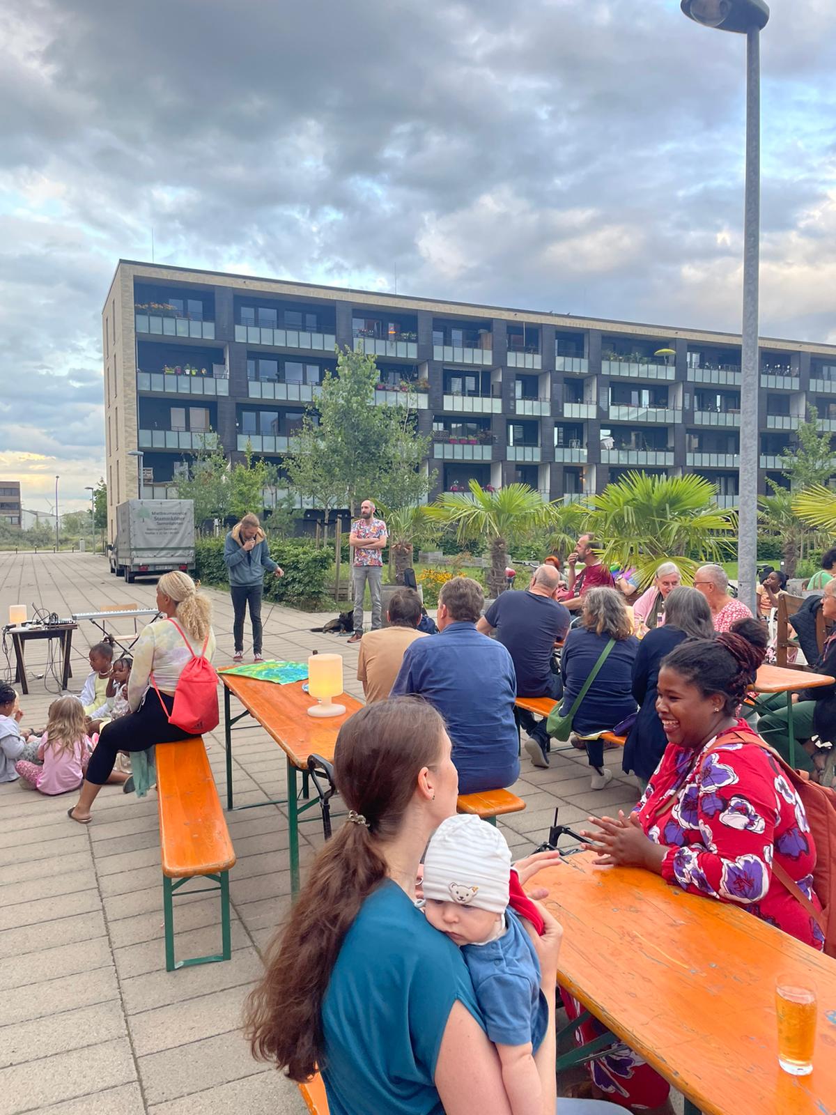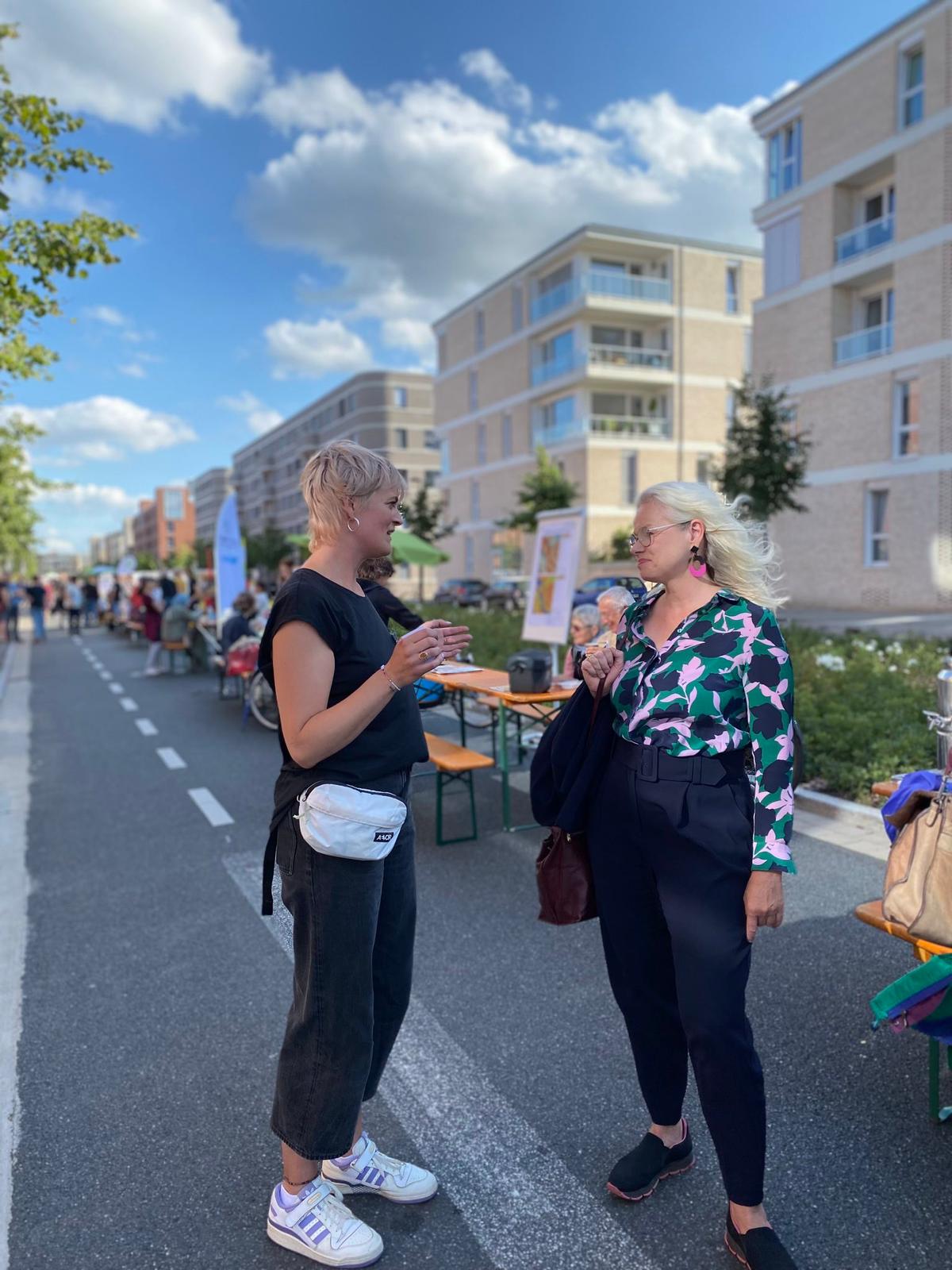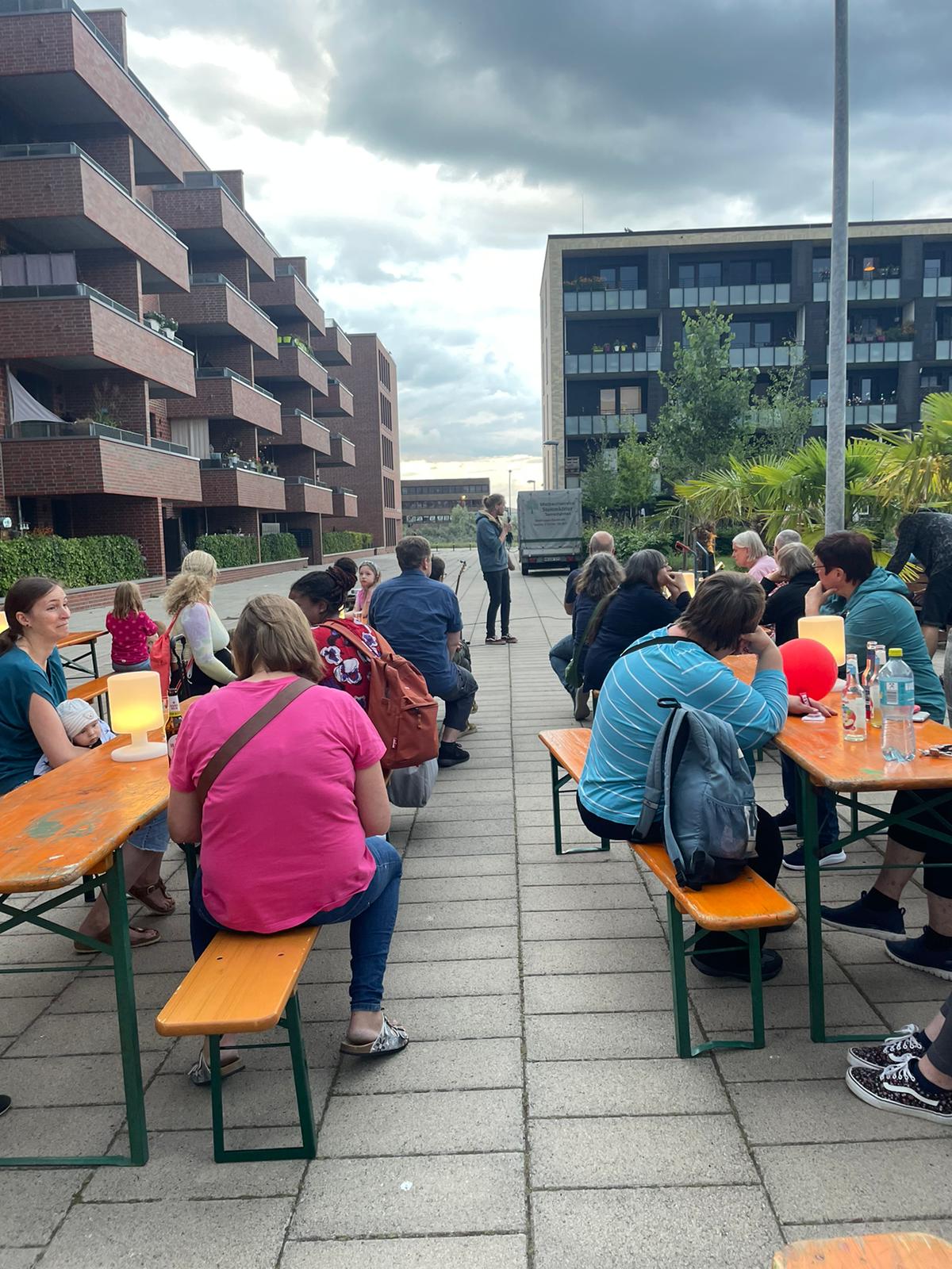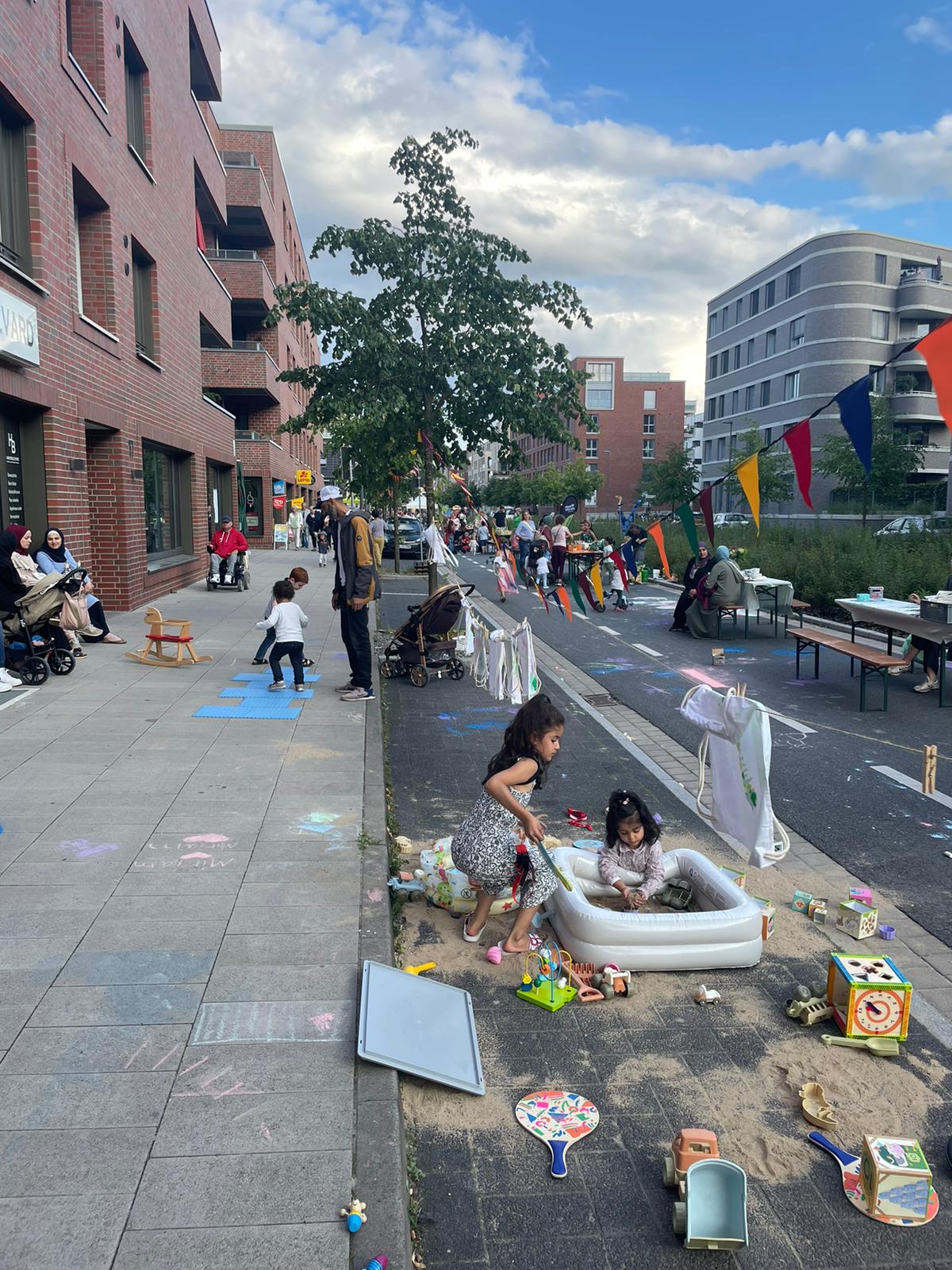 Die zahlreichen Tische wurden von den Nachbar:innen, Gruppen, Vereinen und Firmen bunt und vielfältig eingedeckt. Auf dem bunten Boulevard entstand so eine schöne und lebhafte Atmosphäre, geprägt von Gesprächen, Diskussionen und fröhlichem Miteinander.