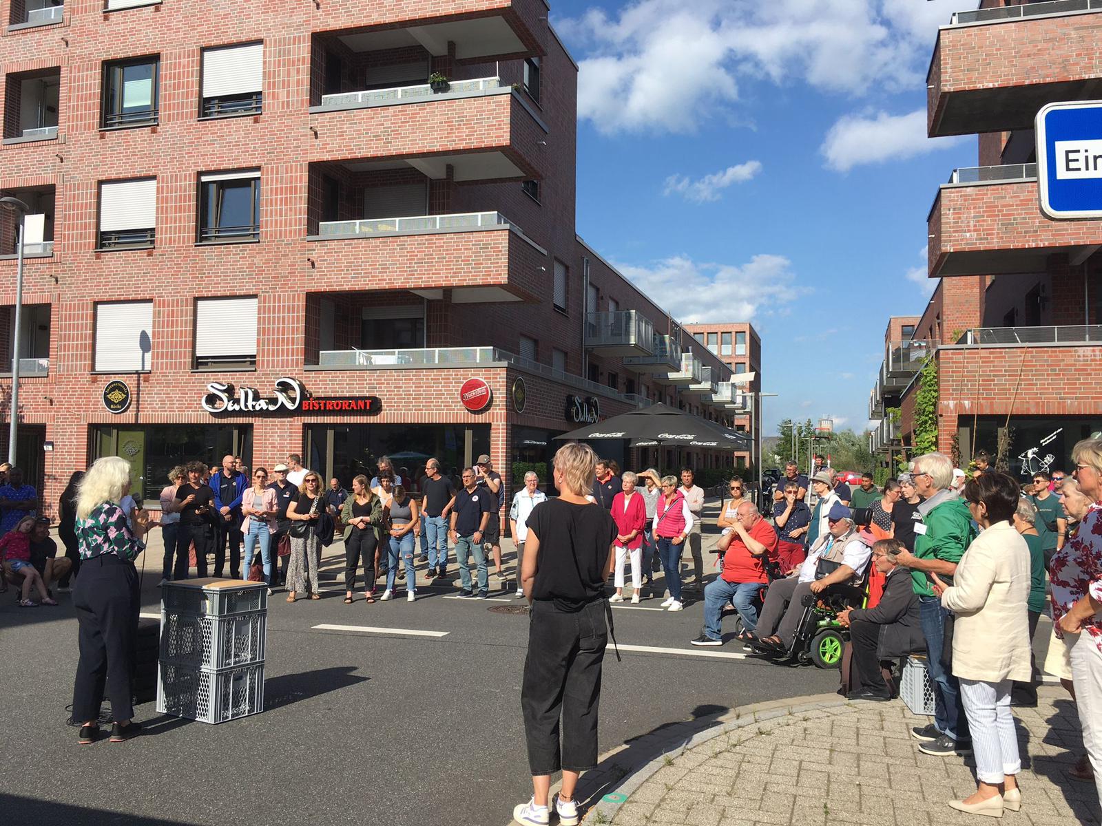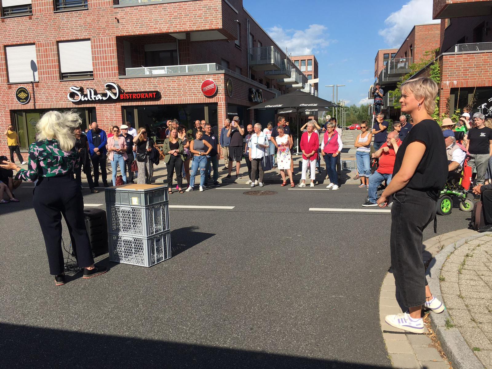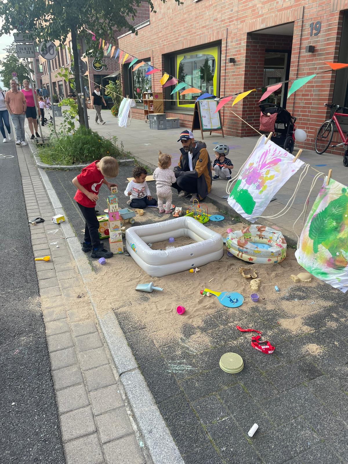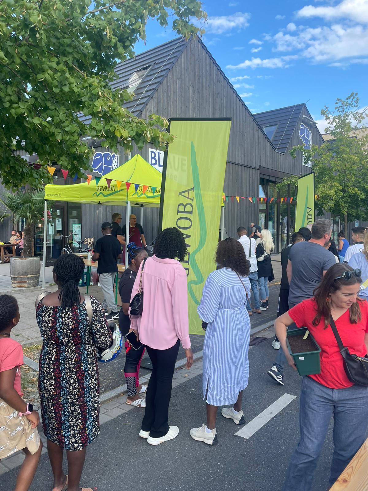 Die zahlreichen Tische wurden von den Nachbar:innen, Gruppen, Vereinen und Firmen bunt und vielfältig eingedeckt. Auf dem bunten Boulevard entstand so eine schöne und lebhafte Atmosphäre, geprägt von Gesprächen, Diskussionen und fröhlichem Miteinander.