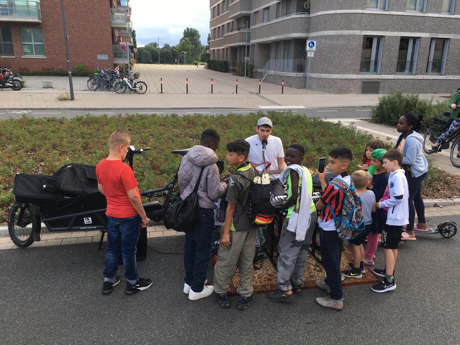 Musikalische Performances von Herr Winter sorgten für sphärische Klangerlebnisse und begeisterten die Gäste. Das Fest endete mit einem Musikquiz, bei dem die Besucher:innen ihre Musikkenntnisse unter Beweis stellen konnten. Mit dem Regen pünktlich zu Beginn des Musikquiz, mussten alle in die Blaue Karawane ins Trockene umziehen, wo die Kinder noch tanzten