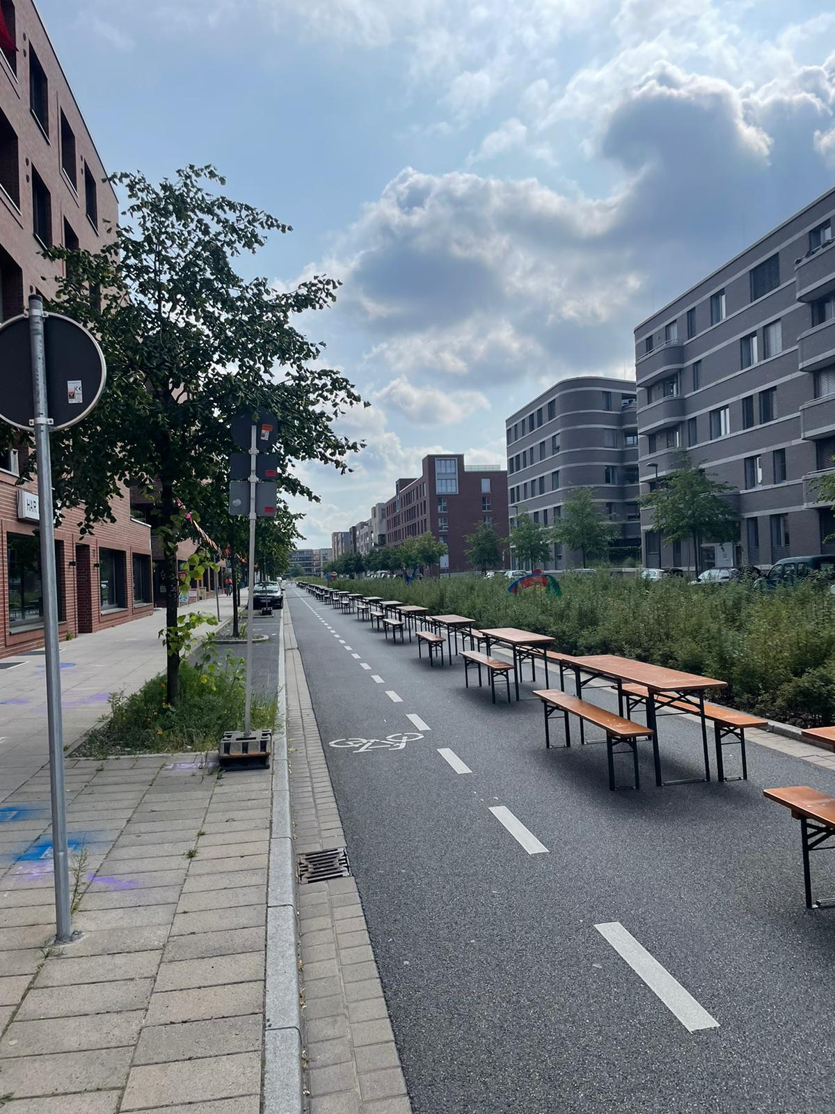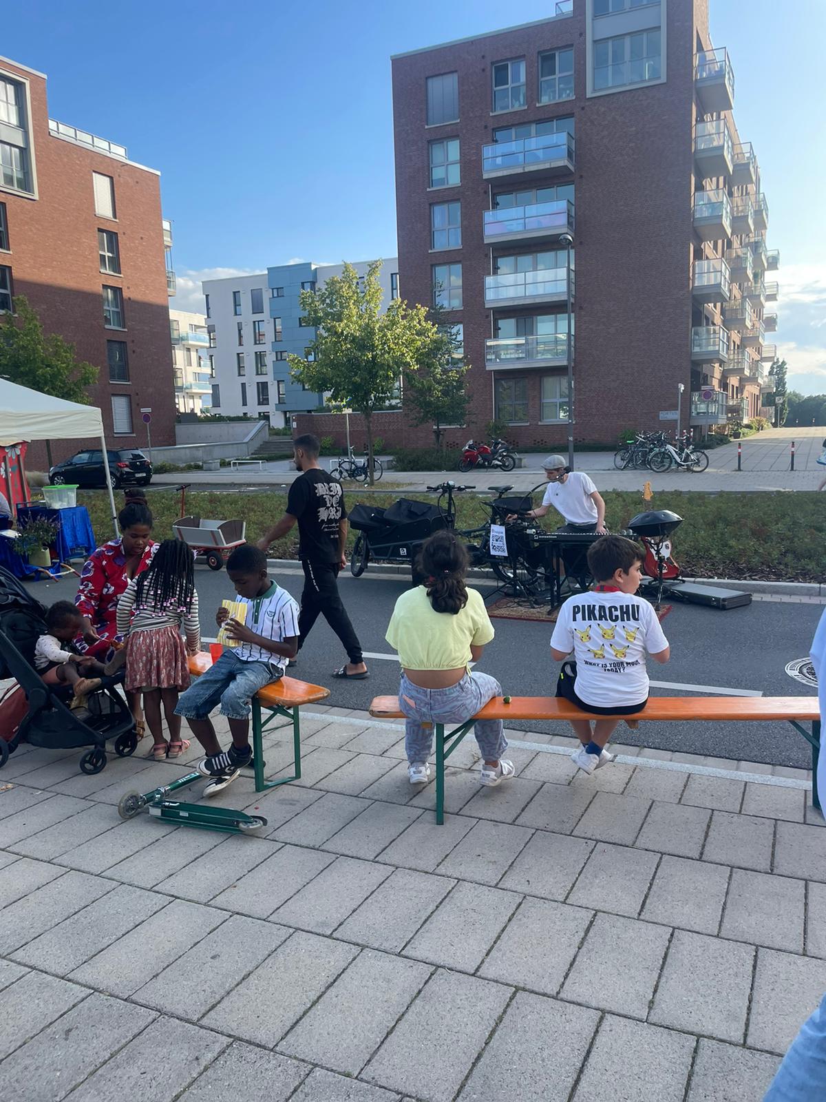 Am vergangenen Samstag, den 26. August, fand in der Überseestadt das zweite nachbarschaftliche Straßenfest statt. Bei „Zu Tisch! 50 Picknick-Tische für die Überseestadt“ versammelten sich geschätzt 1000 Besucher:innen auf dem gesperrten Kommodore-Johnsen-Boulevard, um ein wunderbares Sommerfest zu erleben. Die Veranstaltung stieß auf regen Zuspruch und erhielt äußerst positives Feedback von den Besucher:innen und Nachbar:innen.