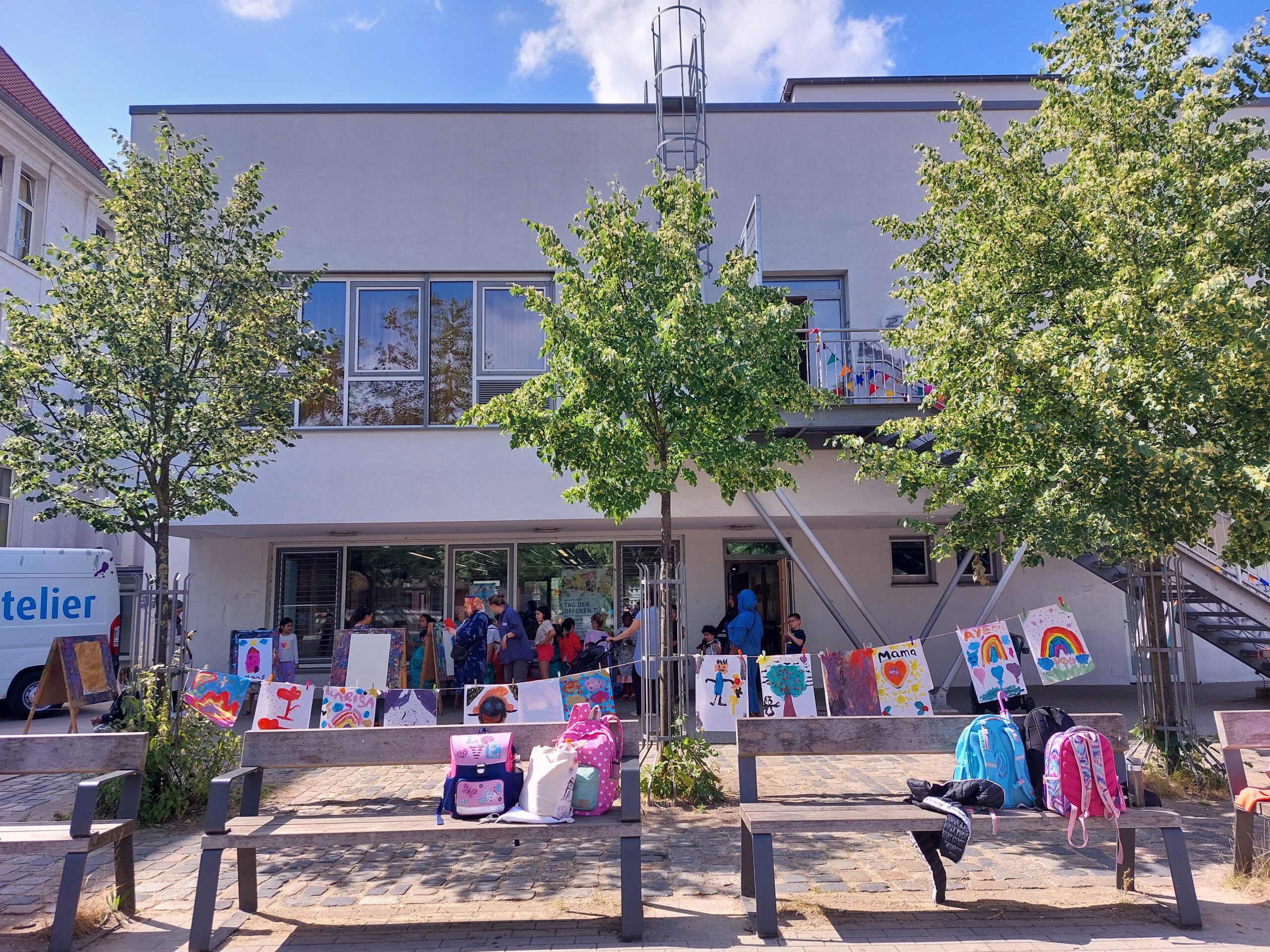 Vor dem Eingang weisen bunte Fahnenketten, die fröhlich im Sommerwind flattern, den Weg. Hier geht’s zum Tag der offenen Tür im Quartiersbildungszentrum (QBZ) Morgenland. Zu einem Kennenlern- und Mitmachnachmittag hatte das QBZ am 23. Juni geladen. Zwischen 14 und 17…