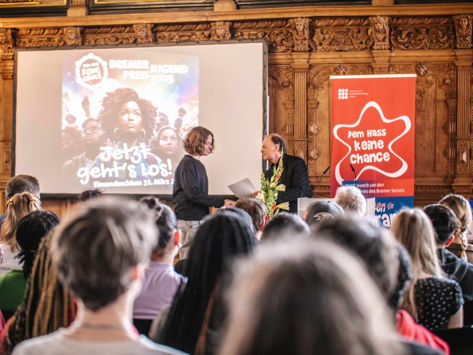 Am Donnerstag, den 5. Juni fand vor über 300 Gästen die feierliche Verleihung des Bremer Jugendpreises 2025 in der Oberen Rathaushalle statt.