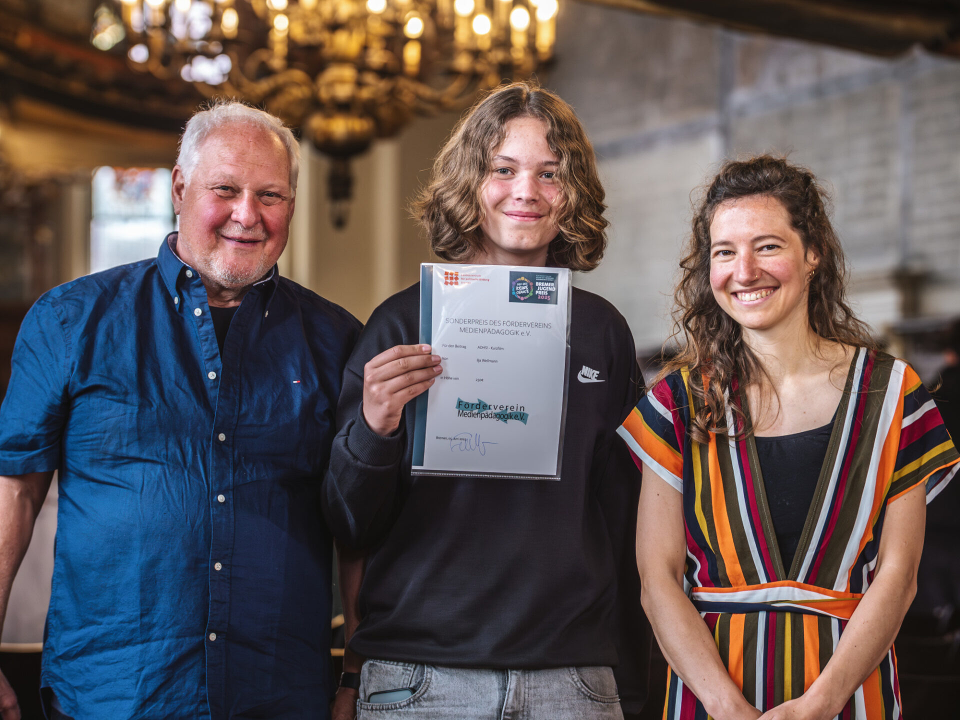 Bei der Preisverleihung waren sowohl Iljas Familie als auch die Kinder- und Jugendlichenpschotherapeutin, Dr. Mona Schwörer, die Ilja für seinen Film als ADHS-Expertin interviewte, anwesend.