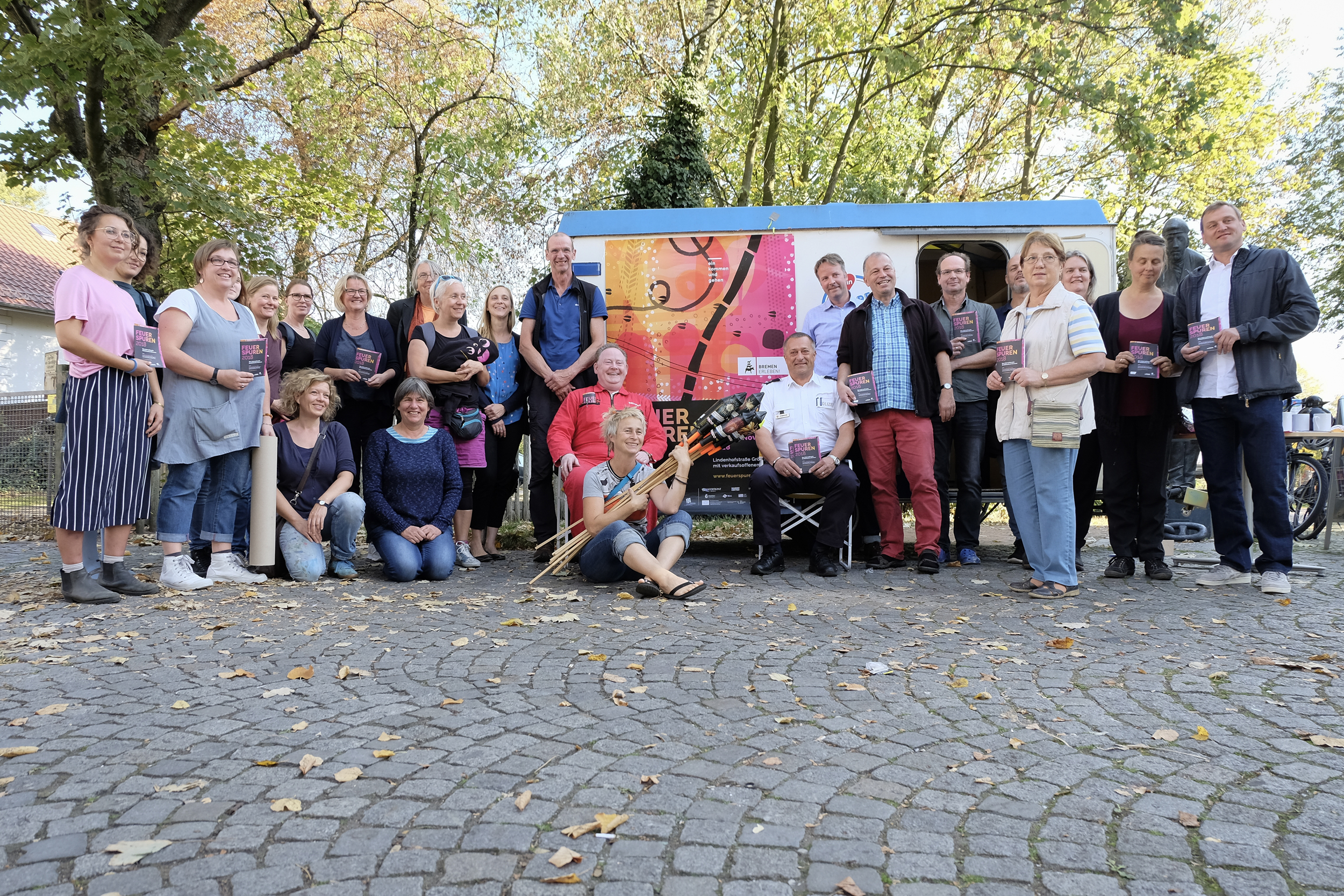Bei schönstem Wetter versammelten wir uns vor dem kleinen Wohnwagen, der sich am 4.11.18 unter dem Titel Mein Gröpelinger Photoalbum in ein Wohnzimmer mit fotografischen Streifzügen durch Gröpelingen verwandelt. Siehe unter: http://www.feuerspuren.de/immer-offen-digital/